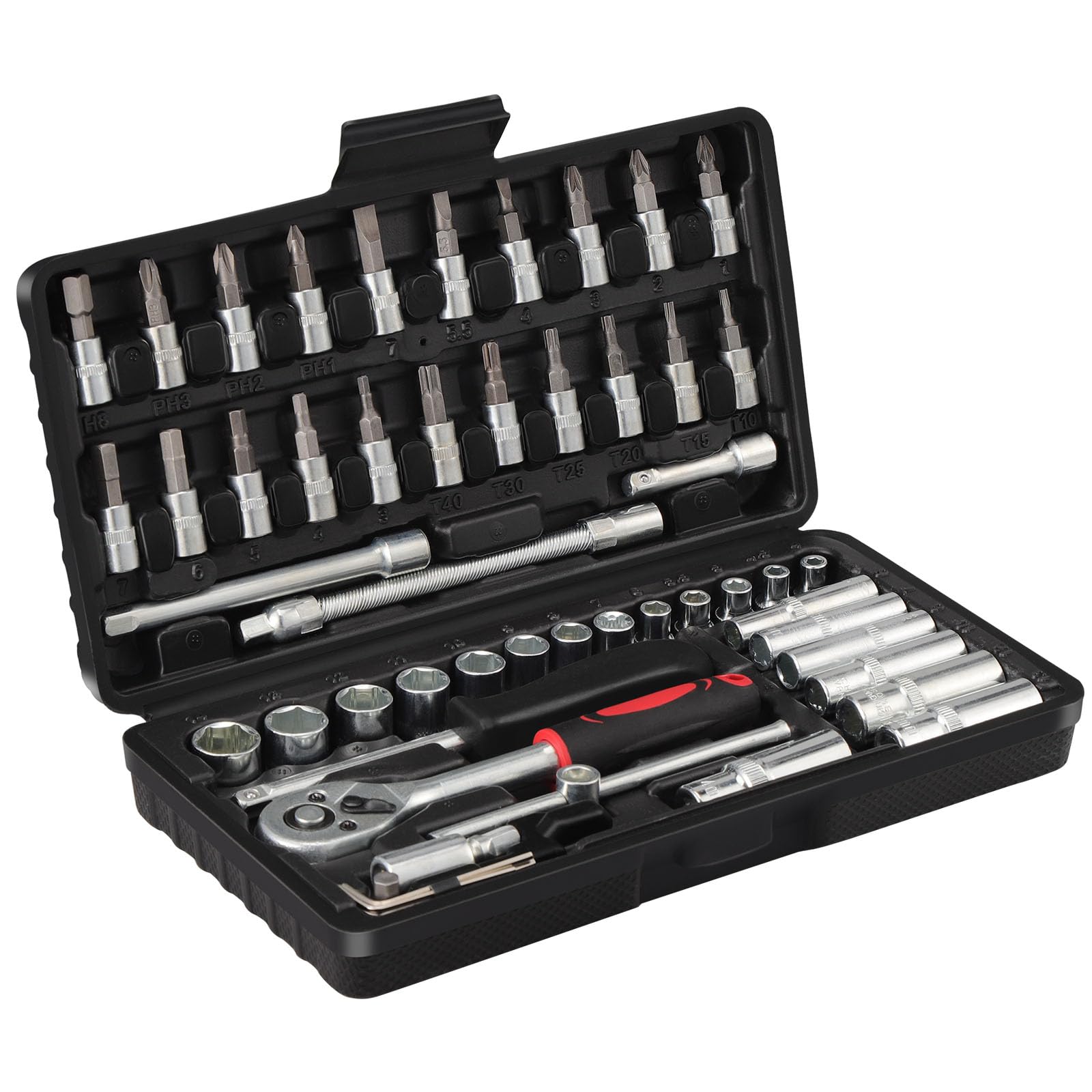 Le mécanisme à cliquet offre un fonctionnement fluide et un transfert de couple fiable, tandis que les embouts et douilles inclus disposent d'une ingénierie précise pour un ajustement optimal et une réduction de l'usure de la fixation. Parfait pour les travaux automobiles, l'entretien du vélo et les réparations générales autour de la maison ou de l'atelier. Matériau de qualité supérieure : fabriqué en acier au chrome vanadium (CR-V) pour une résistance, une durabilité et une résistance à la corrosion supérieures, que ce soit pour des projets de bricolage à domicile ou des réparations professionnelles, il s'attaque aux tâches sans effort 7 douilles profondes 1/4 DR : 6, 7, 8, 10, 12, 13, 14 mm. 1 barre d'extension 1/4 DR 5,1 cm. Jeu de 12 douilles métriques avec entraînement 1/4, poignée à cliquet réversible 90 dents, douilles plates 6 points (4-13 mm) et tige d'extension de 4 pouces, acier CR-V Douille 6 pans 3/4 métrique 44mm clé à cliquet qualité pro 44 Lot de 53 clés à douille. Solution de rangement : comprend un étui de transport robuste avec des compartiments organisés pour un accès et un transport faciles des outils Design à cliquet efficace pour gagner du temps et de l'effort : équipé d'une clé à cliquet spécialisée dotée d'un mécanisme à cliquet avancé, il permet un serrage ou un desserrage rapide des boulons dans une rotation unidirectionnelle, avec un verrouillage automatique dans le sens inverse pour éviter le desserrage de l'écrou. 1 poignée rapide 1/4 DR 1 joint universel 1/4 DR., 1 adaptateur d'embout., 3 clés hexagonales., 21 douilles : SL4,5,5,7 PH1,2,3., HEX3,4,5,6,7,8 T10,15,20,25,30,40 13 douilles peu profondes 14 DR : 4-14 mm. Outils Mecanique Automobile Lot De Clés à Douilles Et Outils à Cliquet - Acier Au Chrome-vanadium - Bricolage Clé à Cliquet 72 Dents Avec Extensions CONTENU - Jeu de 53 douilles en acier au chrome-vanadium. Cliquet 1/4 pouce et inserts pour vis à fente, Torx, PH, PZ et six pans creux. BOÎTE À OUTILS - Douilles, cliquets et embouts sont rangés de manière claire dans la mallette de transport verrouillable 1 rallonge flexible 1/4 DR de 15,2 cm. L'ensemble comprend une clé à cliquet polyvalente de 6,35 mm, différentes tailles de douille et un assortiment d'embouts d'entraînement pour s'attaquer à un large éventail de tâches de fixation. 1 barre en T coulissante 1/4 DR. Cet ensemble complet de 53 douilles est un incontournable pour tout amateur de bricolage ou mécanicien professionnel. Que vous ajustiez des machines, que vous montiez des meubles ou que vous effectuiez l'entretien du véhicule, cet ensemble de douilles offre une fonctionnalité de qualité professionnelle pour les tâches quotidiennes et les applications spécialisées. Utilisation polyvalente : parfait pour l'entretien automobile, la réparation de vélo, les projets de bricolage et les travaux mécaniques professionnels