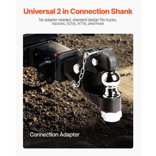 Crochet Attelage, Capacité de Remorquage 13605 kg, Boule d'Attelage 5,87 cm, Convient aux Anneaux de Remorquage 6,35-7,62 cm avec Kit de Montage, Résistant à l'Usure, Revêtement en Poudre Noire Durabilité supérieure : Forgé à partir d'acier haute résistance 45#, notre crochet à téton présente une surface revêtue de poudre qui améliore la résistance à la rouille et à l'usure. VEVOR Barre de remorquage, 2495 kg avec chaînes, Universelle Acier allié revêtement en Poudre sur Pare-Chocs, coupleur pour attelage à Boule 2 po, Ouverture 1000 mm, pour Camion, Voiture, Camping-Car - Bricolage L'attelage à pivot VEVOR peut remorquer sans effort des charges allant jusqu'à 30 000 lb, avec une capacité de charge verticale de 12 000 lb. Large compatibilité : Avec une conception de taille standardisée, nos attelages de remorque à crochet d'attelage s'adaptent facilement lorsqu'ils sont utilisés avec des anneaux de lunette, des anneaux de réception et des attelages à boule, ce qui les rend compatibles avec divers équipements de remorquage, notamment les camions, les tracteurs, les VUS et les VTT Facile à utiliser : Notre crochet récepteur d'attelage à pivot réduit efficacement le risque de collisions ou de mauvaises opérations dans des conditions de faible visibilité, améliorant ainsi la sécurité pendant l'utilisation VEVOR SANGLE DE Treuil pour Remorquage Crochet Plat Bleu 10PCS 10,2 cm... VEVOR Balayeuse à gazon, 123,2 cm 26 pi³, grande capacité de remorquage Connexion sécurisée : Conçu avec une structure de montage à pivot monobloc solide et des boulons de montage GB10., 9, le crochet d'attelage à pivot offre une connexion stable et à haute résistance, réduisant ainsi les risques de sécurité. Le crochet traité thermiquement prolonge encore sa durée de vie De plus, il présente une conception d'installation sécurisée renforcée, offrant une sécurité supplémentaire lors de la connexion et de la conduite.