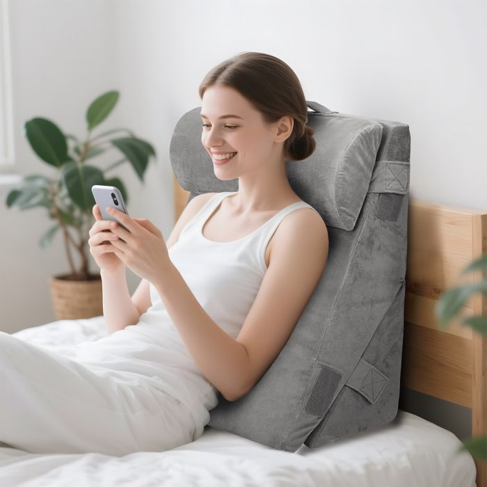 Coussn de postonnement ergonomque en bambou - Confodo Parfait pour tous ceux qui aiment lire en position couchée ou qui ont besoin d'un oreiller confortable pour l'estomac. Coussin De Positionnement Coussin Visage Vers Le Bas Coussin Positionnement Ventre LELEFIDO - Oreiller Lecture Au Lit 60x24x36cm Gris Oreiller Ergonomique Lecture Lit Mousse Respirant Coussin Bisequé Soutien Dos Confort polyvalent : le coussin de positionnement abdominal LELEFIDO est conçu aussi bien pour s'allonger en position couchée que pour la lecture verticale – Idéal comme coussin de lecture ou coussin de visage vers le bas. Les matériaux robustes garantissent une stabilité dimensionnelle durable. Dimensions : avec ses dimensions de 60,7 x 24 x 36,5 cm, ce coussin biseauté offre un soutien compact mais ergonomique. Découvrez le confort du coussin de lecture au lit NOFFA Coussin de Lecture en Mousse à Mémoire de Forme pour Lit | Oreiller Cale Dos | Coussin à Coin Triangle est Idéal pour Soutenir Le Dos Lorsque Soulagement de la pression : ce coussin abdominal offre un soutien ciblé pour le cou, le dos, la taille et les jambes. Le design du coussin biseauté assure une répartition uniforme de la pression et aide à maintenir une posture confortable en position couchée ou assise. Que vous souhaitiez vous asseoir et lire dans le lit ou vous détendre en position couchée, la forme ergonomique offre un excellent confort et stabilité.