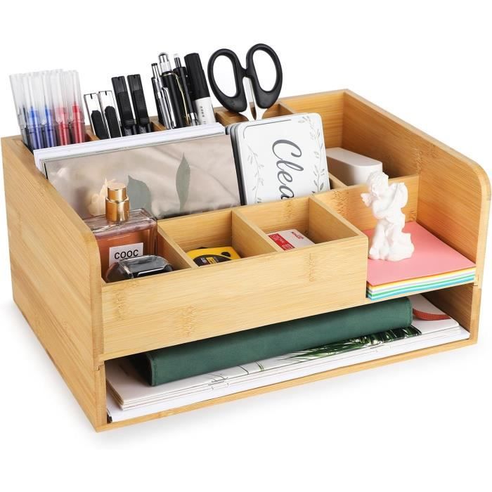 La plate-forme supérieure peut également être utilisée pour placer votre ordinateur, téléphone, agrafeuse et réveil. HOMCOM Boite de Rangement de Bureau - Organiseur de Bureau - 7 Organiseur bambou 2 tiroirs | Rangements salle de bain | Pier Import 【Exécution exquise】: Le produit est soigneusement poli pour un toucher confortable et lisse, de sorte que vous n'avez pas à vous soucier des rayures sur les mains. En même temps, le bambou naturel de bruyère est inoffensif pour le corps humain et respectueux de l'environnement. Grand espace de rangement : deux tiroirs spacieux pour les petits objets plus une étagère pour l'ordinateur, le téléphone et les fournitures de bureau. Particulièrement pratique pour les objets souvent perdus 【Grand espace de rangement】: deux grands tiroirs offrent suffisamment d'espace de rangement pour les petits objets qui sont toujours perdus pour répondre à vos besoins quotidiens. 【Beau look】: la couleur naturelle classique et la structure originale en bambou sont de haute qualité et raffinées, ce qui en fait un ajout élégant à n'importe quelle pièce qui ne se démodera pas. Pas de montage nécessaire, mini organiseur de tiroir de bureau en bambou, boîte de rangement de table pour bureau, comptoir de cuisine, chambre à coucher, pas de montage nécessaire (3 tiroirs avec étagère