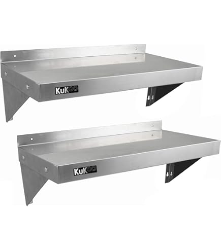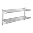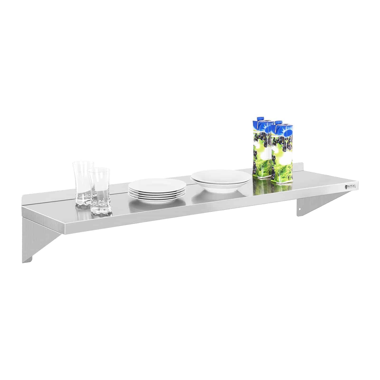 Grâce aux supports biseautés, situés sous les plateaux épais de 3,5 cm, l'étagère dispose d'une stabilité parfaite. Ensuite, les deux plateaux peuvent être montés avec la distance que vous souhaitez grâce aux supports réglables en hauteur. Grâce à l'étagère murale RCWR-80.2 de Royal Catering, vous pourrez entreposer de manière visible vos ustensiles de cuisine sur deux étages comme vos récipients, votre vaisselle ou vos ingrédients tout en économisant de la place Étagère murale - RCWR-80.2 - Maison L'acier inoxydable de haute qualité, qui compose l'étagère murale, octroie un design élégant et modern tout en étant simple à nettoyer, ce qui rend cette étagère particulièrement adaptée au domaine de la restauration. Étagère murale - RCWR-1400.4 - Maison 80 cm de long pour 30 cm de profondeur Étagère murale équipée de deux plateaux d'une épaisseur de 3,5 cm avec supports étagère Murale Acier Inoxydable Design Moderne Royal Catering - Royal Catering Étagère Murale Cuisine Tablette Frigo Congelateur Ainsi, l'étagère s'adapte à vos besoins et peut être modifiée aussi rapidement que simplement. Étagère murale - 2 plateaux - 80 cm Grâce à l'étagère murale RCWR-80., 2 de Royal Catering, vous pourrez entreposer de manière visible vos ustensiles de cuisine sur deux étages comme vos récipients, votre vaisselle ou vos ingrédients tout en économisant de la place. Le montage de l'étagère est aussi simple que pratique car les rails porteurs de l'étagère peuvent être accrochés au mur au moyen des vis de fixation incluses à la livraison.