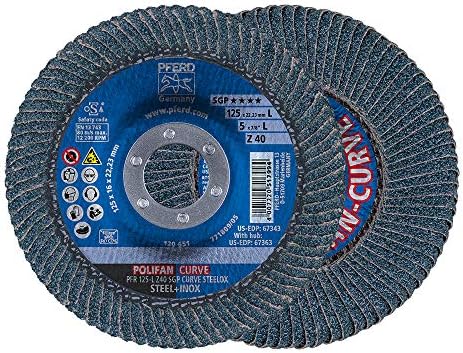 Disques à lamelles POLIFAN A-COOL SG INOX ALU PFERD // Diamètre : 115 mm // Taille du grain : 40 // Finition : conique, PFC // Abrasif : corindon de zircone Z // Alésage : X-LOCK (22,23 mm) // Entraînement des outils appropriés : meuleuse d'angle, meuleuse d'angle sans fil // Vitesse de rotation maximale : 13 300 tr/min // Matériaux usinables : acier, acier inoxydable (INOX) // Tâches de traitement : ponçage de surface, Traitement de soudure. Lot 10 Disques Lamelles Disque à Lamelles POLIFAN Z PSF STEELOX D. 125 Mm Granulation Z-40 Conique INOX (Par 10 Disque Abrasif X-LOCK PFERD Disque à lamelles POLIFAN PFC 115 Z40 PSF STEELOX/X-LOCK // Avec le système Bosch X-LOCK pour meuleuse d'angle, changez d'outils rapidement et facilement. L'outil s'enclenche de manière audible. Les outils avec X-LOCK peuvent également être utilisés sur les meuleuses d'angle traditionnelles avec filetage M14 Outil de grande qualité pour les applications de meulage les plus exigeantes tout en assurant une utilisation économique. Usinage des cordons de soudure, chaneinage, meulage de surface en acier Disques à surfacer à lamelles POLIFAN® PFR 125 Z 40 SGP-CURVE M/22,23 Pferd - réf. 67689052 - Rubix Le système unique répond aux normes de qualité et de sécurité les plus élevées et résiste aux conditions d'utilisation difficiles et difficiles. chanfreinage, ébavurage // Recommandations d'utilisation : placez l'outil sur le système de serrage X-LOCK de votre meuleuse d'angle et fixez-le en appuyant légèrement vers le bas. Au lieu d'un alésage rond, le système X-LOCK présente un contour en forme de X qui permet de fixer l'outil sur la meuleuse d'angle.