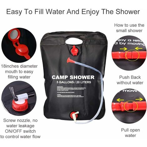 Sac De Douche Solaire De Camping, Sac De Douche Solaire De Camping Sac De Douche Solaire Portable Pliable De 20 L Temperature De Douche De 45 C Avec Pommeau De Douche Interchangeable Chauffe Eau Solaire Pour La Randonnee Et Lesca 92142862 Contrôle de l'eau réglable : profitez de rinçages rapides ou de douches relaxantes avec une valve multifonctionnelle qui permet des transitions en douceur entre l'intensité de l'eau et les motifs de pulvérisation pour répondre à vos besoins individuels. Nazalus-Vente Douche de camping -Sac de douche solaire de 40 l... Sa poignée renforcée et son tube rigide permettent de la suspendre et de la transporter facilement. Il peut supporter le poids d'une poche d'eau. Convient pour : le camping, les voyages, la randonnée, le trekking et autres sports de plein air Avec ce sac de douche, vous pouvez rendre vos expériences en plein air encore plus agréables. Solution légère pour l'extérieur : conçu pour une vidange rapide et un minimum d'espace de stockage, ce sac de douche de camping pliable aide les randonneurs et à optimiser leur espace de rangement sans être lourd Lot de 4 sacs de douche solaires de 20 L, sac de douche portable avec tuyau Idéal pour les aventures en plein air et les utilisateurs de sacs de douche de camping qui apprécient la sécurité Parfait pour les randonneurs et les voyageurs, le sac de douche de camping de 12 litres combine l'énergie solaire avec un design fonctionnel pour l'extérieur. Dimensions du produit : Dimensions déplié : Diamètre : environ 20cm / 7., 87 Hauteur: 50cm / 19., 69 Taille du pommeau de douche : 11cm / 4., 33 Longueur du tube de pompe à air : 75cm / 29., 53 Longueur du tuyau de douche : 200cm / 78., 74 Longueur totale de la bandoulière : environ 120cm / 47., 24 Poids du produit (y compris la boîte) : Poids : 1150 g Pression de la pompe à air : 3 psi Contenu : 1 sac de douche de camping Remarques : 1., En raison des différents écrans et effets de lumière, la couleur réelle de l'article peut être légèrement différente de la couleur montrée sur les images., 2., Les mesures étant prises à la main, les tailles indiquées peuvent varier légèrement. Ce sac garantit une expérience transparente et écologique pour toutes vos aventures dans la nature. Solution de douche durable : simplifiez votre routine de douche en plein air avec un sac de douche de camping à énergie solaire qui fournit un système d'eau chaude fiable. La construction robuste offre une expérience d'utilisation fiable sans vous soucier de basculer ou de glisser. Il retient l'eau chaude de manière fiable et dispose d'une fonction anti-fuite efficace pour tous vos voyages en plein air. Complément judicieux à votre équipement de randonnée ou à votre kit d'outils, il prend en charge des activités telles que la randonnée, la natation et l'atterrissage.