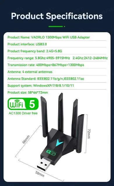 Clef Wifi Clé WiFi 1300Mbps Dongle WiFi USB 3.0 5ghz - Dongle WiFi USB Dualband 2 Cle Wifi Usb ➤ 【Taux de transfert ultra-rapides USB 3., 0】 USB 3., 0 prend en charge des taux de transfert allant jusqu'à 5 Gbps-10 fois plus rapides que l'USB 2., 0, garantit des performances de débit maximales de l'adaptateur réseau sans fil USB et une connexion Internet plus stable, rétrocompatible avec USB 2., 0 et USB 1., 1 également . BrosTrend 1200 bit/s USB WLAN Stick, WiFi Adapter für PC Desktop... La clé WiFi Maxesla AC1300 Mbps est un adaptateur USB 3.0 double bande qui offre une vitesse de connexion ultra-rapide allant jusqu'à 1300 Mbps ➤ 【Double bande haute vitesse】 Adaptateur wifi sans fil 802., 11ac haute vitesse, jusqu'à 1300 Mbps de vitesse wifi sur les bandes 5,8 GHz (867 Mbps) ou 2,4 GHz (400 Mbps). Compatible avec Windows XP / 7/8 / 8., 1 / 10, MacOS 10., 9-10., 14., Vous pouvez installer le pilote avec le CD inclus ou télécharger le pilote, puis brancher l'adaptateur sur votre pc / ordinateur portable, il recevra le signal wifi de votre routeur. BrosTrend 1200 bit/s USB WLAN Stick, WiFi Adapter für PC Desktop Mode AP - Passez simplement en mode AP, puis il peut créer un point d'accès pour partager le wifi, laissez votre téléphone mobile, ordinateur portable, iPad et autres appareils recevoir le wifi. Spécifications: Interface: USB 3., 0 Norme sans fil: IEEE802., 11a/b/g/n/ac RF Frequency: 2., 412-2., 472GHz; 5., 180-5., 825GHz Compatible les systèmes: Windows XP / 10/8 / 8., 1 / 7 / Vista(86/64Bit)/ Mac 10., 9-10., 14 Security Encryption: WPA-PSK/ WPA2-PSK/ WPA/ WPA2/ WEP Taille du produit: 1., 5*0., 67*0., 33inch (38., 5*17*8., 5mm) Instruction: 1., Avant de brancher l'adaptateur réseau sans fil sur le port usb, veuillez d'abord installer les pilotes via le CD MINI ou télécharger le pilote à partir de http://en., comfast., com., cn/index. Une fois que vous avez exécuté le logiciel, il vous suffit d'insérer l'adaptateur pour se connecter., Conseils: 1., Si vous voulez obtenir un signal de 5,8 GHz, vous devez disposer d'un routeur WiFi bi-bande à 5,8 GHz., 2., Si l'adaptateur WiFi est connecté à la bande 5,8GHz, la vitesse maximale est de 867 Mbit/s, sinon, il fonctionnera à la vitesse maximale. Emballage: 1 * Clé WiFi 1 * CD Pilote 1 * Manuel de l'Utilisateur La vitesse minimale est de 400 Mbit/s (2,4 GHz). Vous pouvez remplacer un adaptateur WiFi plus rapide pour votre ordinateur / PC sans vitesses Internet lentes, et votre téléphone peut se connecter aux signaux 5G. Le signal peut traverser le mur sans s'affaiblir. php?m=content&c=index&a=show&catid=30&id=348 pour l'installer.