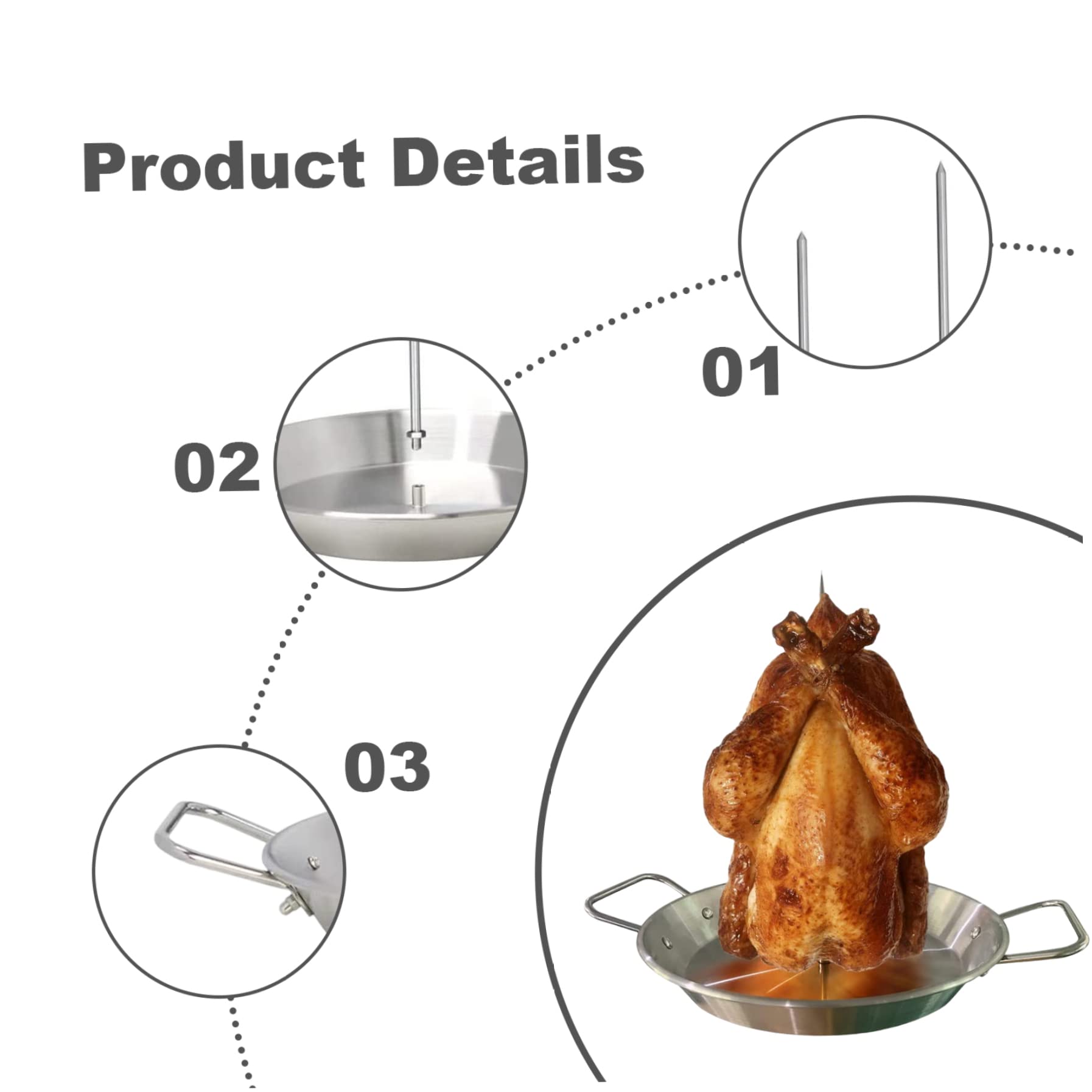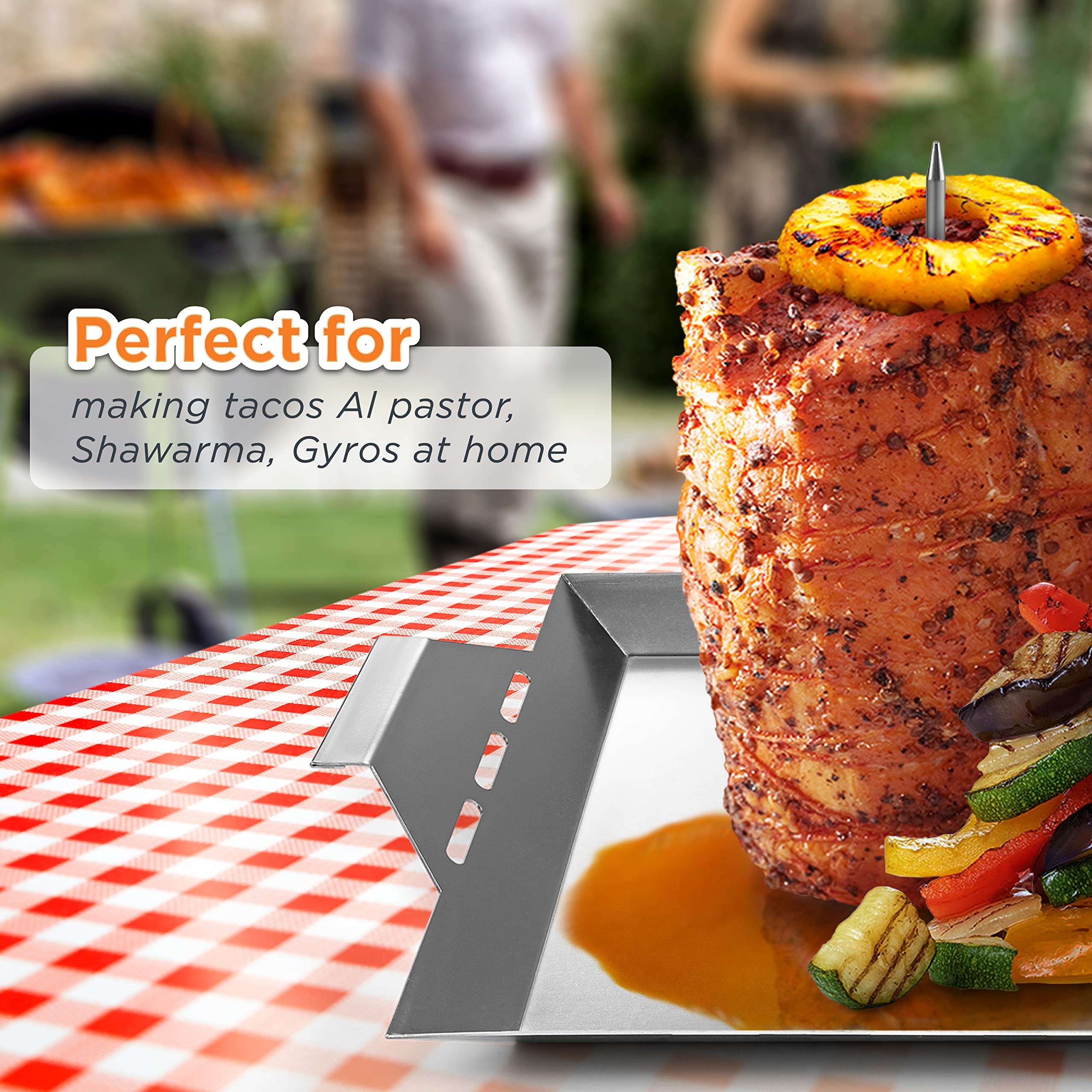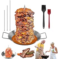 Caractéristiques : - Nom du produit : poêle gyroscopique avec brochette. Idéale pour les rassemblements en intérieur et en extérieur, cette poêle polyvalente est parfaite pour préparer des tacos al pastor, shawarma, brochettes et plats de barbecue. Pour un nettoyage rapide, trempez dans l'eau chaude pendant cinq minutes avant de le laver. Compatibilité améliorée : notre support de cuisson gyroscopique est disponible avec trois longueurs de brochettes (20,3 cm, 25,4 cm, 30,5 cm), ce qui le rend compatible avec la plupart des fours, fumoirs et grills. - 1 brosse pour barbecue. La base ronde recueille les jus, améliorant la rétention d'humidité et ajoutant de la saveur à vos aliments. Équipé d'une poignée, ce support Shawarma simplifie le retrait du fumoir ou du four et permet un rangement mural pratique, optimisant ainsi l'espace de la cuisine Coréen Poêle à Griller Ronde Gril Sur Barbecue Coréen Plaque Barbecue Camping Barbecue Pour Cuisiner De La Contrairement aux brochettes traditionnelles en bambou, notre design robuste peut accueillir des portions de viande substantielles sans basculer. Il peut être utilisé pour cuire une variété d'aliments, y compris le poulet rôti, la dinde, le canard, les morceaux de viande, le shawarma, les saucisses, les steaks et plus encore, préservant leurs jus et saveurs pour des résultats appétissants. Placer une feuille d'aluminium sur la surface et appliquer de l'huile de cuisson au préalable rendra le nettoyage encore plus facile. Sa construction robuste résiste à la déformation et à l'usure, promettant des années d'utilisation fiable. TASTAN Poêle à Gyro avec Brochette pour Four, Brochette Verticale en Acier Inoxydable 304 - Poêle à Four avec Accessoires / Ensemble Complet de Cuisson de Kebab / Équipement Bbq Professionnel, Brochettes Construction de haute qualité : fabriquée en acier inoxydable 304 de qualité supérieure, notre poêle gyroscopique avec brochette pour griller offre une durabilité et une longévité exceptionnelles - 1 tampon de rempotage en silicone., Remarques : 1., Les mesures étant prises à la main, les tailles indiquées peuvent varier de 1 à 2 cm., 2., La couleur de l'article peut varier légèrement en raison des différents paramètres d'affichage et de l'éclairage. Le design efficace dispose d'un assemblage sans couture avec des joints filetés et une base ronde qui recueille des jus savoureux pour améliorer vos résultats de cuisson. Matériaux de qualité supérieure : fabriquée en acier inoxydable 304 de haute qualité, notre poêle gyroscopique avec brochette pour griller garantit une durabilité exceptionnelle et une performance durable. Cette broche verticale est parfaite pour une utilisation au four et est livrée avec trois brochettes amovibles de différentes longueurs (20,3 cm, 25,4 cm, 30,5 cm), ce qui la rend adaptable à une gamme de fours, fumoirs et grills. - Taille du produit : 10., - Pointes amovibles : 8/10/12., - Matériau du produit : acier inoxydable 304., Contenu du paquet : - 1 poêle à brochettes verticales. Utilisation polyvalente : notre broche gyroscopique est idéale pour les réunions de famille en intérieur et les événements en plein air, tels que le camping, la randonnée, les pique-niques et les barbecues.