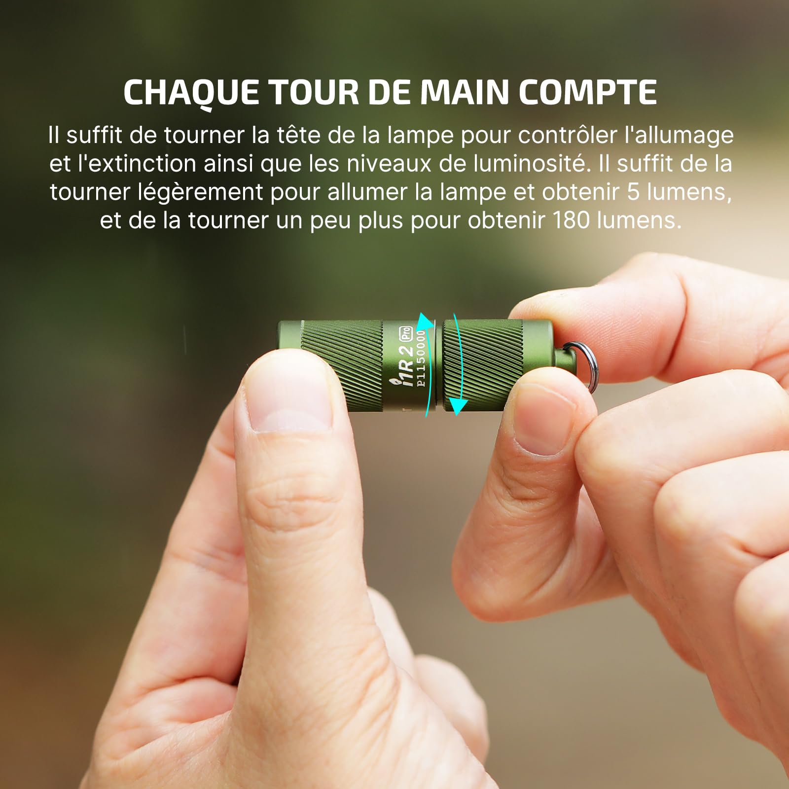【𝐀𝐩𝐩𝐥𝐢𝐜𝐚𝐭𝐢𝐨𝐧】Pour une utilisation quotidienne, un très bon choix pour envoyer des cadeaux à des amis, des parents ou des familles Lampe De Poche Lampe Torche LED Porte-clés - ZVD - I1R2 Pro - Rechargeable USB - 180 Olight I1R2 Pro 【𝐈𝐧𝐭𝐞𝐫𝐫𝐮𝐩𝐭𝐞𝐮𝐫 𝐫𝐨𝐭𝐚𝐭𝐢𝐟, 𝐟𝐚𝐜𝐢𝐥𝐞 à 𝐦𝐚𝐧𝐢𝐩𝐮𝐥𝐞𝐫】Allumez/éteignez la lampe d'une simple rotation. Description du produit OLIGHT Lampe de Poche 180 Lumens Par rapport à I1R2 I1R2 PRO est jusqu'à 180 lumens en termes de luminosité, Jusqu'à 48 m de portée Jusqu'à 12 heures d'autonomie La i1R 2 Pro est la version améliorée de la i1R 2 EOS, la populaire lampe de poche porte-clés rechargeable Olight. Alimentée par une batterie lithium-ion intégrée améliorée de 130 mAh, elle dispose d'une autonomie qui atteint jusqu'à 12 heures Le port de charge n'est plus Micro-USB mais USB-C Le poids est de 22g, ce qui est légèrement plus lourd que l'I1R2 d'origine Top 10 des eilleures lapes torches rechargeables 【𝐍𝐨𝐮𝐯𝐞𝐚𝐮 𝐏𝐨𝐫𝐭 𝐔𝐒𝐁-𝐂】Une charge complète est possible en 1h40., Ses 51,3mm de long avec un poids de seulement 22g lui permettent de vous accompagner partout sur un porte-clés Alimentée par une batterie intégrée , elle dispose d'une autonomie qui atteint jusqu'à 12 heures.