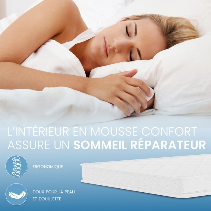 Découvrez le confort de sommeil incomparable avec notre surmatelas de 5 cm d'épaisseur en mousse de qualité supérieure, disponible dans les dimensions 90 x 190 cm. Surmatelas Mousse Douce Ego Home Surmatelas Doux En Mousse, 140 X 200 Cm, Hauteur 6 Surmatelas Lit D'appoint Certipur Ce surmatelas est certifié certiPUR, ce qui signifie qu'il est exempt de substances nocives et garantit une utilisation saine et respectueuse de l'environnement. Confort amélioré : la conception en forme d'œuf offre un soutien plus complet grâce à sa forme particulière, en augmentant la surface de contact avec la surface du corps, répartit tous les points de pression plus uniformément et en améliorant le confort global pour une meilleure nuit de sommeil. Certification de qualité et garantie : fabriqué selon les normes de qualité allemandes, exempt de substances nocives et hypoallergénique. BedStory Suatelas 140 x 190 avec Housse de Babou, Extra Doux... La housse est certifiée Oeko-Tex, ce qui assure un environnement de sommeil sûr et hygiénique. Utilisez le côté zoné vers le haut pour une sensation de couchage plus douce avec un soutien plus ciblé ou le côté plat vers le haut pour une sensation de couchage plus uniforme et plus ferme Doux et confortable : le surmatelas en mousse offre une surface de couchage extra douce, particulièrement adaptée à tous ceux qui préfèrent une sensation de sommeil plus douce Le surmatelas dispose d'une fermeture éclair pratique et amovible, ce qui permet de changer et de nettoyer facilement la housse. Grâce à son envoi compressé et sous vide, il se déplie rapidement et sans effort directement chez vous. Lors du nettoyage, un lavage à la main à une température maximale de 40 °C est recommandé pour préserver la qualité du surmatelas. BedStory Suratelas en ousse à éoire de fore au charbon de babou
