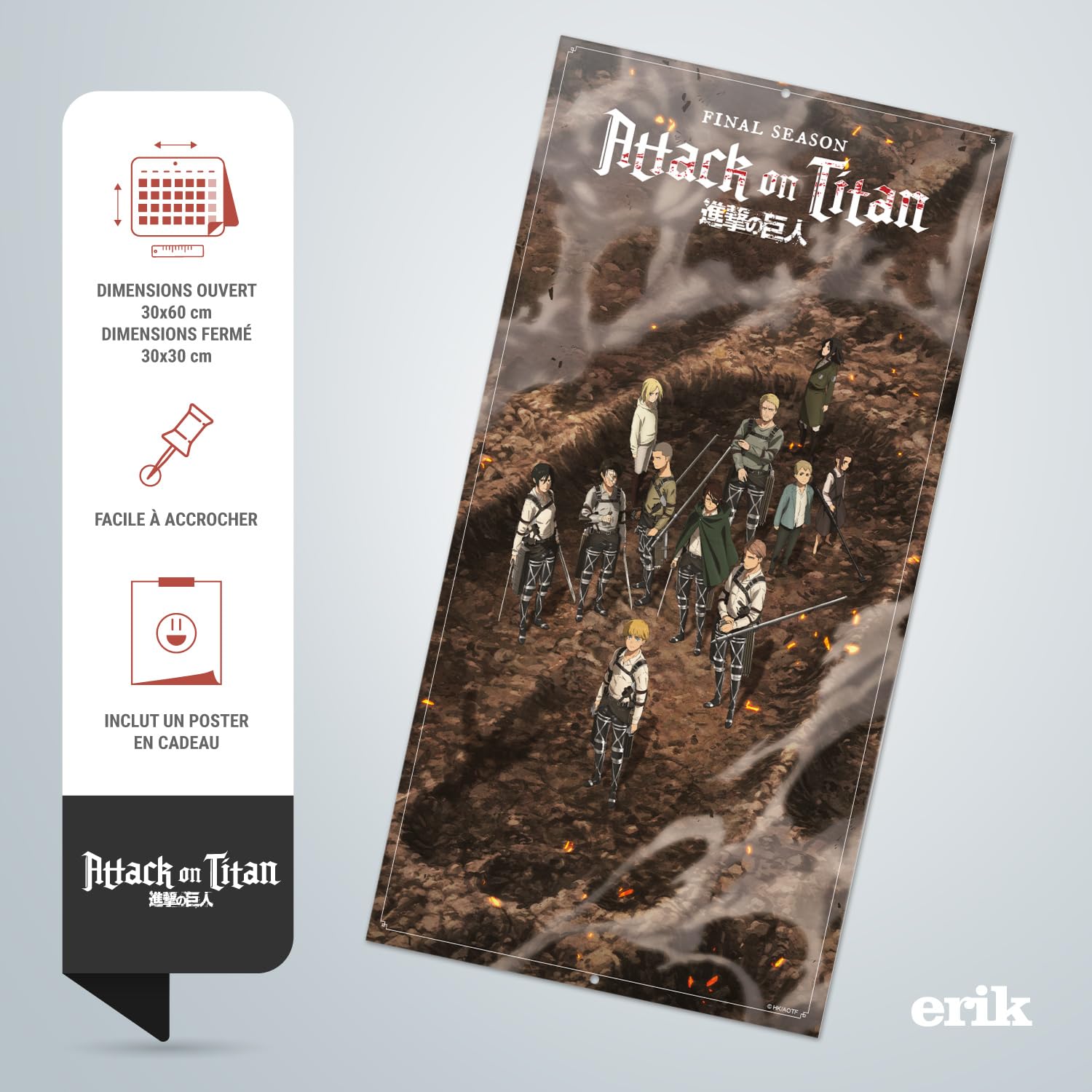 One Piece Décoration Grupo Erik - Calendrier Mural 2025 L'Attaque Des Titans - Format 30x60cm - Multilingue - Papier 150g Calendrier Anime Calendrier 2026 MULTILINGUE - Disponible en plusieurs langues, dont le français, l'anglais, l'italien, l'espagnol, l'allemand et le portugais, pour une utilisation facile et accessible. Eric - 🔥🚗 Arrancó enero 2026 🚗🔥 ¡La primera entrega del año! 🙌 Cristal CALENDRIER MURAL - Une fois déplié, le calendrier mesure 30x60 cm, offrant une vue claire et détaillée de chaque mois. JANVIER à DÉCEMBRE 2026 - Ce calendrier mensuel vous accompagne tout au long de l'année 2026, avec une page dédiée pour chaque mois, de janvier à décembre, pour une organisation optimale et sans faille CALENDRIER MURAL - Une fois déplié, ce calendrier mesure 30x60 cm, offrant une vue claire et détaillée de chaque mois. PAPIER ÉPAIS - Fabriqué avec un papier mat de haute qualité de 140g, ce calendrier offre un grand confort d'écriture et est donc parfait pour s'organiser efficacement tout au long de l'année, sans bavures ni traces Il s'attache facilement au mur et s'intègre parfaitement dans n'importe quel espace en apportant une touche décorative à votre intérieur PAPIER 140g - Conçu en papier mat de haute qualité de 140g, ce calendrier assure un confort d'écriture optimal et est parfait pour une organisation sans traces ni bavures tout au long de l'année. Retrouvez les titans primordiaux sur ce calendrier mensuel de l'Attaque des Titans, parfait pour les fans du manga ou de l'anime qui souhaite ajouter une touche d'originalité à leur intérieur Il se fixe facilement au mur et ajoute une touche décorative à votre espace.