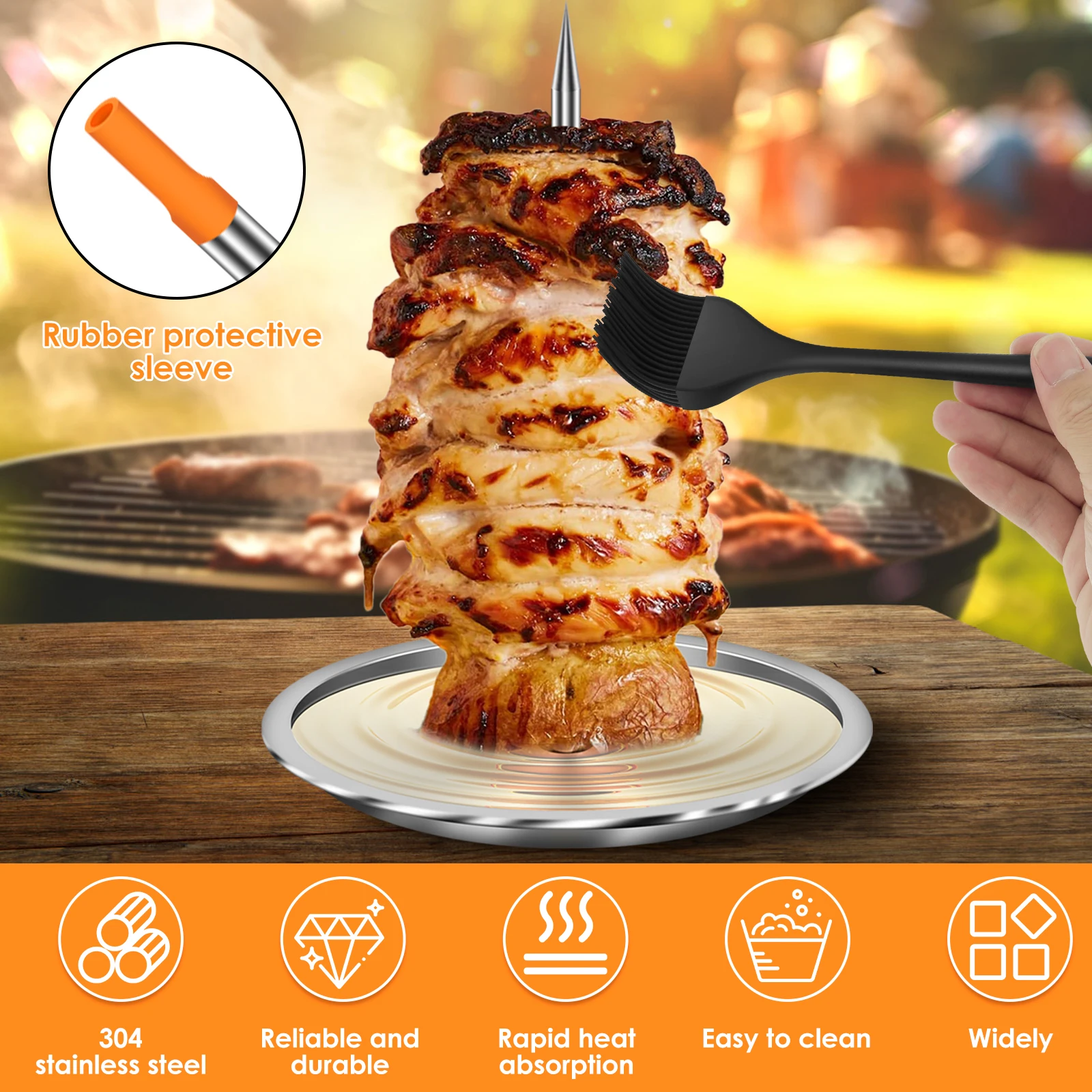 Brochette verticale en inox pour grill, support à brochette Support Rôtissage Vertical Brochette électrique Verticale: Grill En Acier Inoxydable Fabriqué En Cuisson Homogène Viande Poisson Camping Améliorez l'expérience de repas : le support vertical pour barbecue parfait pour les réunions de famille permet à tout le monde de profiter de la fête visuelle de la cuisine et de transformer le repas en divertissement. Poids de l'article : 230 g. Matériau de haute qualité : le stockage vertical pour barbecue est fabriqué en acier inoxydable 304 de qualité alimentaire, sûr pour les aliments, robuste et durable, facile à nettoyer et ne rouille pas. Matériau] Fabriqué en acier inoxydable de haute qualité, cet ensemble de brochettes verticales est conçu pour résister à des températures élevées et empêcher la rouille, garantissant ainsi une durabilité et des performances à long terme Répartition de la chaleur : le support vertical de cuisson favorise une cuisson homogène en exposant uniformément tous les côtés de la viande/poisson à la chaleur et en évitant les taches cuites. SUC-Support à brochettes 8QT Support de Brochette de Gril Vertical en... Design peu encombrant : la brochette a un design droit, maximise l'espace de cuisson en faisant cuire les aliments verticalement, parfait pour les petits barbecues ou les zones de cuisson encombrées. Contenu : vous recevrez une broche verticale et une brosse à huile en silicone, la longueur est de 21 cm, la largeur est de 19,8 cm, ce qui en fait un outil pratique et universel pour vos besoins.