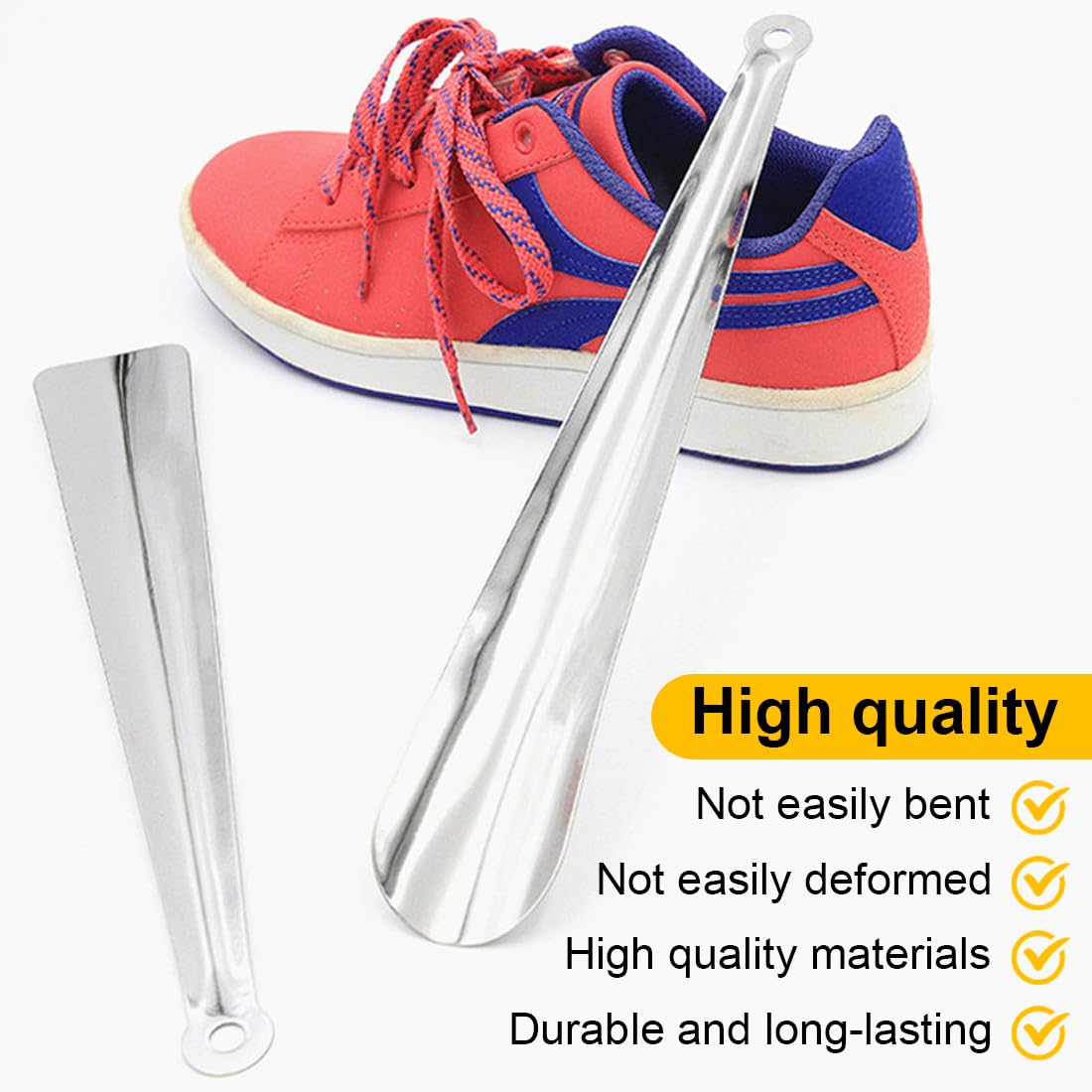 Chausse Pied Long Metal,2 Chausse-Pieds en Acier 30CM Chaussé Pied Manche Long HSIXHAF 2 Pcs Chausse Pied En Acier Inoxydable, 30cm Très Stable Chausse-Pieds Avec œillet De Suspension Pour Toutes Les Tailles De Pieds, Chaussures Et Bottes Facile à Utiliser (Argent Accessoire Chaussure Poignée Caoutchouc 【Cadeau parfait】Le chausse-pied métallique long est un cadeau attentionné pour les parents, conjoints et enfants lors de diverses fêtes. Utilisez pour la corne de chaussure, prolongez la durée de vie de vos chaussures, ne laissez jamais le dos de votre chaussure se plier ou tomber à la semelle. Un bâton de chaussure peut transmettre votre amour à votre famille et rendre la famille pleine de bonheur. CHAUSSE PIEDS METAL TU - Chaussures 【Contenu du colis】Vous recevrez 1 chausse-pied en métal, longueur 30 cm, adapté aux hommes, femmes et personnes âgées. Chausse pied métal - PERFORMANCE HEALTH FRANCE 【Matériau】Les longs chausse-pieds pour hommes sont en métal, stable et robuste. - Vous pouvez facilement mettre sur des chaussures en appuyant doucement et en glissant.