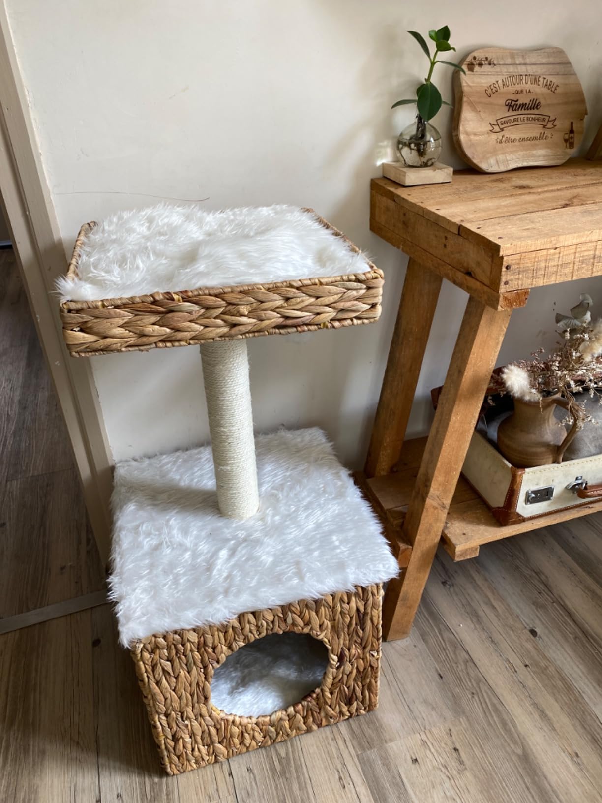 Plate-forme/base large et épaisse : stabilité et sécurité optimums Panier, niche, poulailler, parc, jouet, toilettage, sur Aosom vous trouvez tout l’équipement nécessaire pour leur créer un espace douillet. Griffoirs en sisal pour le soin des griffes de votre chat et son bien-être , 2 coussins amovibles fournis ARBRE À CHAT TOUT-EN-UN : De l'heure du jeu à l'heure du sommeil, ce centre d'activité pour chats donne à votre chat un espace confortable ! La conception à 2 niveaux satisfait l'instinct d'escalade de votre chat totales : 48L x 48l x 72H cm ; - Convient pour les chats de moins de 5 kg - Arbre à chat à monter soi-même avec l'aide de la notice de montage fournie Prendre soin de vos animaux de compagnie Soyez serein, nos produits sont parfaitement adaptés aux animaux de compagnie. Sûr Nous utilisons des matériaux de qualité pour rendre la structure du produit stable et durable, non toxique, convient parfaitement pour vos animaux de compagnie. Pawhut Arbre à chats arbre de jeu pour chat centre d'activités niche Chat Griffoir Chat Poteau Arbre à Chat en Sisal Jouet Chat Griffoir... Conception et fabrication avec des matériaux de qualité (panneaux de particules, peluche courte polyester haute densité) : usage pérenne Apportera une touche d'originalité et d'élégance supplémentaire à votre intérieur Arbre à Chat Coussins Amovibles PawHut Arbre à Chat Griffoir Sisal Naturel Tunnel Plateforme Style Cosy Chic Quenouille Peluche Polyester 56 X 40 X~1gmqhaah39800 Arbre Chat PawHut Beige Arbre à chat centre d'activités variées : griffoir, niche, panier d'observation, pompon suspendu permettant à votre chat de jouer, faire ses griffes et de s'étirer Pour vous offrir plus de praticité mais aussi pour répondre aux différents besoins des animaux. Doté de griffoirs, d'une niche, d'un panier d'observation et de 2 coussins, votre chaton ou chat pourra se reposer, développer et s'épanouir pleinement ! Le centre d'activité comprend un poteau en sisal, une niche, un lit en quenouille, ainsi qu'un pompon suspendu pour un jeu polyvalent.