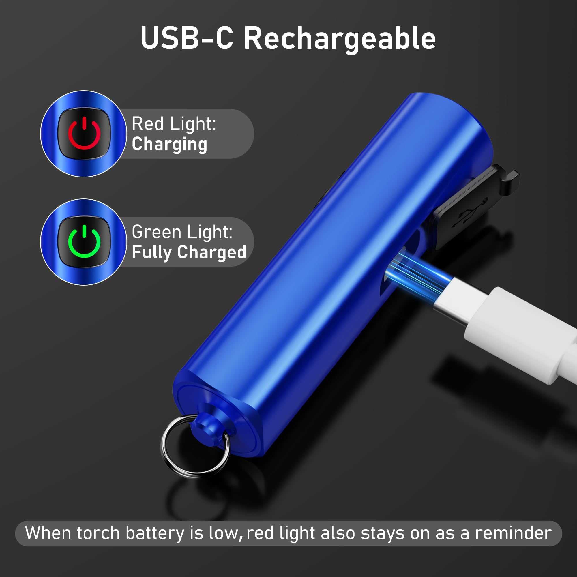 【Fonctions Pratiques d'arrêt et de Mémorisation】Vous pouvez éteindre la lampe torche de deux manières: 1., Après 8 secondes dans n'importe quel mode, appuyez à nouveau sur l'interrupteur pour l'éteindre., 2., Dans n'importe quel mode, appuyez longuement sur l'interrupteur pour l'éteindre., Simple et efficace. Que vous marchiez dans l'obscurité ou que vous ayez besoin d'un éclairage de secours, elle éclaire précisément le chemin, ce qui en fait un compagnon d'éclairage portable fiable. Lampe Torche EDC Ultra-lumineuse & 3 Modes]Compacte et puissante, Blukar mini lampe torche EDC offre un faisceau lumineux et une large plage d'éclairage, idéale pour un usage quotidien. Appuyez simplement sur le bouton marche/arrêt pour basculer facilement entre les modes fort, moyen et faible Lampe de Poche Rechargeable, Zoomable 5 Modes D'éclairage Lampe Torche LED Ultra Puissante pour... Cette mini lampe torche compacte dispose également d'une fonction mémoire, conservant le dernier mode d'éclairage lorsque vous la rallumez. Blukar Lampe Torche LED Rechargeable, Mini EDC Lampe de Poche C'est la lampe torche idéale pour diverses situations. Que ce soit pour le camping, la marche, la randonnée, l'alpinisme, la randonnée pédestre ou la pêche, elle est toujours à portée de main, ce qui en fait un outil d'éclairage portable indispensable. Lampe Torche Rechargeable USB C Blukar Mini Lampe Torche LED Rechargeable, EDC Lampe De Poche LED Avec Torche 3 Modes USB-C Camping L'interrupteur sert également d'indicateur de batterie: un voyant rouge indique que la batterie est en charge ou faible, et un voyant vert indique que la batterie est pleine ou en cours d'utilisation, ce qui permet de visualiser l'état de la batterie en un coup d'œil. 【Lampe Torche EDC Ultra-lumineuse & 3 Modes】Compacte et puissante, Blukar mini lampe torche EDC offre un faisceau lumineux et une large plage d'éclairage, idéale pour un usage quotidien. Appuyez simplement sur le bouton marche/arrêt pour basculer facilement entre les modes fort, moyen et faible.