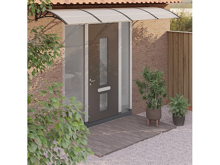 Costway Auvent Porte D'entree De 122 X 99 Cm Protection Solaire Upf50 Marquise De Porte Et Fenetre Exterieur Plaque En Polycarbonate Protection Contre Pluie Neige Vent Gris Auvent De Porte Noir Et Transparent 150x75 Cm Polycarbonate - Auvent De Porte Noir Et Transparent 150x75 Cm Polycarbonate Auvent De Porte Abri Porte Protection Contre La Pluie Store Exterieur Protection Solaire Auvent De Porte Auvents De Porte Au 83582643 Auvent De Porte Noir 350x100 Cm Polycarbonate Vidaxl à retrouver en drive ou livraison au meilleur prix dans le rayon Auvent et marquise. Profitez de nos promotions et faites vous livrer ou venez retirer vos courses rapidement dans votre magasin Cet auvent de porte exquis et de haute qualité est une solution facile pour protéger votre porte de la pluie, de la neige, de la grêle ou d'autres intempéries. Matériau durable : les feuilles de polycarbonate creuses de l'auvent de porte d'entrée sont incroyablement durables, résistantes aux intempéries et à la corrosion.Cadre robuste : la construction solide avec des supports ABS...