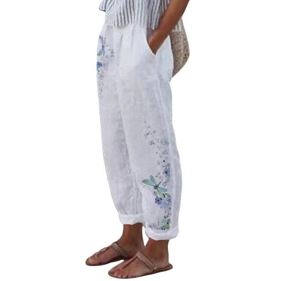 Femme Été Sarouel Pantalon Large Ample en Coton et Lin Elastique Taille... Pantalon Hippie Yoga Pantalon Leger Ete Femme Large Vetement Hippie Tenue De Sport Tenue Sport Confortable Sarouel Femme Pantalon Fluide Été Chic Pantalons De Yoga Et Conception de plusieurs détails, Couleurs classiques, Version mode Plusieurs utilisations appropriées