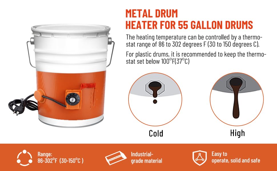 Ceinture chauffante pour tambour d'huile - Ceinture chauffante en silicone pour tambour d'huile DIY Réchauffeur en caoutchouc de silicone Réchauffeur de réservoir de gaz de pétrole Spécifications. Le réchauffeur en silicone pour fût d'huile en métal de 55- gallon est un élément chauffant flexible, durable et efficace spécialement conçu pour s'enrouler autour de la circonférence du tambour Nom du produit : réchauffeur de tambour d'huileTaille du produit :86x20CM/34x8IN 20L 800W,152x25CM/60x10IN 150L 2000W,174x12., 5CM/68., 5x5IN 200L 1000W,174x25CM/68., 5x10IN 200L 2000WRésistance - la compression : 1500 V / 5STension de tenue : 5 KVConvient aux seaux métalliques, aux seaux - miel, aux seaux en plastique, aux seaux de peinture, au plastique et au métal., 1., Ce chauffe-bande baril est contrôlé par un thermostat réglable., 2., Des ressorts flexibles sont utilisés pour maintenir le chauffe-fût en place autour de barils de différents diamètres., 3., Le ressort peut être étiré jusqu'à environ 3 pouces., 4., pour les fûts en plastique, il est recommandé de régler le thermostat en dessous de 37 °C)., 5., Convient aux seaux métalliques, aux seaux - miel, aux seaux en plastique, aux seaux de peinture, au plastique et au métal., Le forfait comprend. Il peut être enroulé directement autour de la partie chauffée, ce qui facilite son installation et son retrait. Idéal pour chauffer du biodiesel broyé ou traité ou pour faire fondre rapidement de l'huile de coco et pour refroidir les conduites d'eau en hiver. Ceinture Chauffante Pour Fût Chauffe-tambour 200L Chauffe-tambour à Huile Ceinture Chauffante En Réchauffeur Tambour Huile Thermostat 1x chauffe-fût - huile (tambour non inclus) FACILE - UTILISER : Des ressorts flexibles sont utilisés pour fixer la bande chauffante en silicone - des tambours de différents diamètres. Les ressorts peuvent être étirés jusqu'à environ 3 pouces. Matériau ÉLÉMENTS CHAUFFANTS : composés de fils en alliage nickel-chrome soigneusement disposés et d'un tissu isolant en caoutchouc de silicone haute température. Grand réchauffeur de seau de silicone de PHL, réchauffeur réglable de La plage de réglage de la température est de 30 - 150°C (80 - 300°F). Le ressort peut être étiré à environ 7,6 cm pour une utilisation facile. Utilisation facile : après avoir retiré le film chauffant électrique du tambour, fixez-le au tambour d'huile qui doit être chauffé, et branchez l'alimentation pour régler la température
