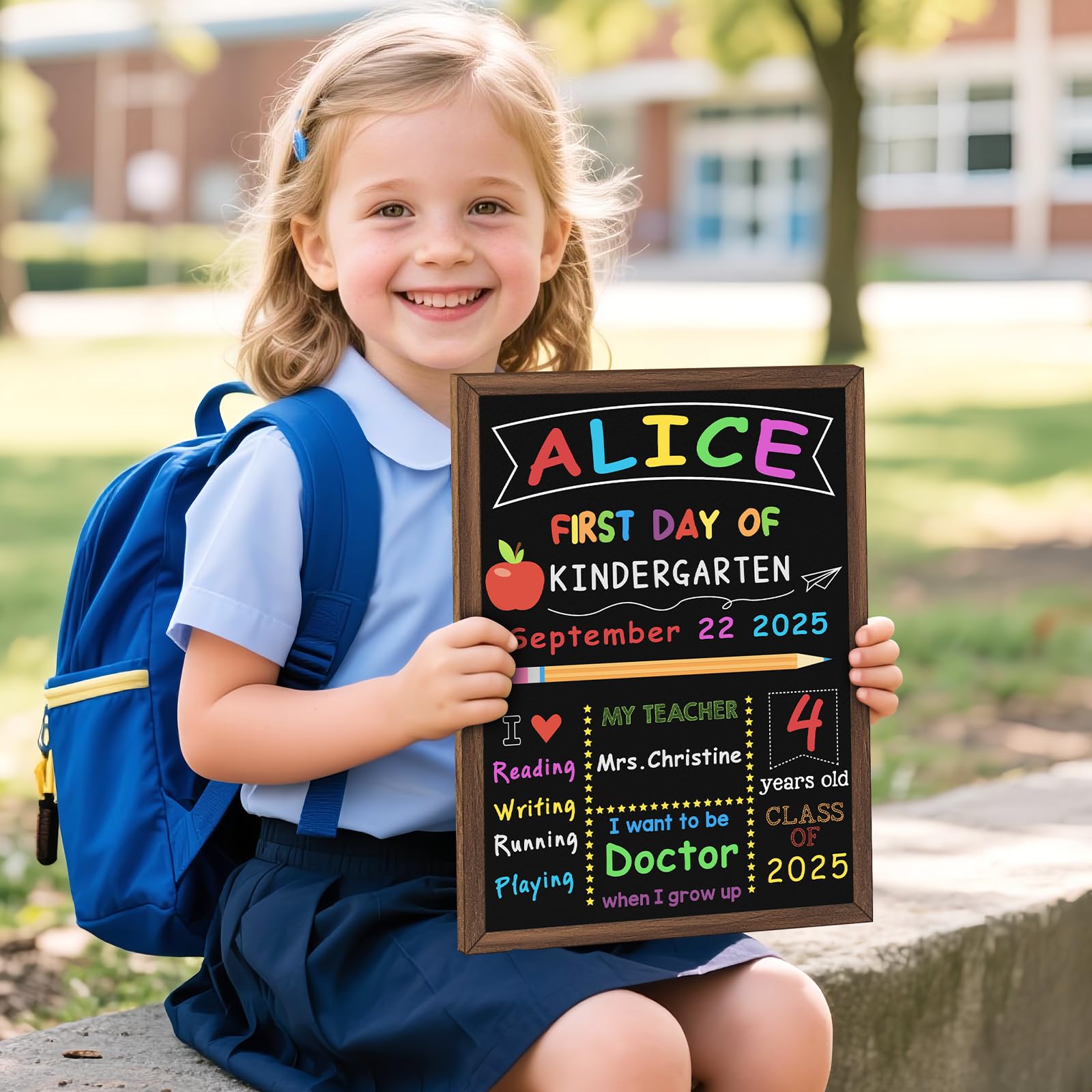 Description de Premier jour de panneau scolaire - First Day of School Board - 14 x 11 Double face et dernier jour de classement scolaire avec cadre pour les enf Cela stimule non seulement leurs capacités de réflexion, mais les encourage également à exprimer leurs rêves avec audace, ce qui en fait un cadeau idéal de début d'année scolaire pour les jardins d'enfants Tableau Bois école Enfant Panneau « First Day Of School » - Tableau Noir Double Face Avec Cadre Pour Enfants, Fournitures De Rentrée Scolaire Pour Maternelle 1ère Année - 35,6 X 27,9 Cm Décoration Classe Maison Caractéristiques : Matériau : bois., Dimensions : 30 x 19,8 cm., Caractéristiques : 1., Design double face, ce qui permet de capturer facilement la croissance d'un enfant sur un semestre., 2., Les motifs et les couleurs sur le tableau noir le premier et le dernier jour de retour à l'école sont lumineux, laissant beaucoup d'espace pour que les enfants puissent s'exprimer. Vous n'avez pas à vous soucier qu'il soit endommagé par un essuyage répété, et il peut être réutilisé Joli accessoire photo : le tableau noir peut être utilisé comme un petit accessoire, particulièrement adapté pour les scènes photo des enfants. Date rentrée scolaire 2025 quebec Back To School Sign First Day Of School Sign - Reusable Chalkboard Photo Prop For Kindergarten & Preschool Kindergarten School Supplies Design double face : notre tableau noir est conçu avec une disposition double face, un côté disant « Le premier jour d'école » et l'autre côté « Le dernier jour du trimestre », utilisé pour capturer les merveilleux moments du premier jour d'école des enfants et de la fin du trimestre Matériau : le tableau noir est fabriqué en bois dur de densité, ce qui est plus robuste et durable. Il sert également de décoration de salle de classe ou de maison.
