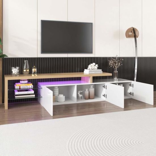 Il est idéal pour ranger votre télévision, vos consoles de jeu, DVDs, livres ou autres objets déco, le tout en gardant votre salon bien ordonné Style Moderne et Élégant : Notre meuble TV moderne ajoutera une touche d’élégance à votre salon. Meuble TV bas moderne de 200 cm de large, blanc brillant et naturel, avec éclairage LED RVB, 6 portes et 2 tiroirs, armoire multimédia de salon (blanc naturel MDF) 20900 Il y a 5 jours · [Design moderne] Buffet TV en blanc brillant et gris béton, ajoutant une touche élégante et contemporaine à votre salon.[Grand espace de rangement] Six portes, deux tiroirs et trois niches pour organiser vos appareils multimédia et accessoires.[Éclairage LED multicolore] LED intégrées avec plusieurs couleurs au choix pour créer une ambiance personnalisée dans votre salon... Matériau de qualité: Le meuble tv avec rangement est fabriqué en panneaux de particules de haute qualité e verre, qui n'est pas seulement chic et brillant, mais aussi beau, durable et facile à nettoyer. Meuble TV avec lumières LED blanc 160x35x40 cm | Leroy Merlin Montage rapide et facile : Ce meuble télé blanc/noir est conçu pour être facile à assembler et est accompagné d'instructions claires, étape par étape, que vous pouvez suivre pour terminer l'assemblage rapidement. En raison de la grande taille de ce produit, il est expédié en 2 colis et peut arriver à des dates différentes Meuble Tv Led Meuble TV Avec Lumières LED,Banc TV Moderne,Meuble De Rangement Blanc 260x36,5x40 Cm860090 Maison Du Monde les lignes épurées et le design élégant rendent l'unité TV parfaite pour s'intégrer dans votre intérieur, idéal pour les amateurs de décoration contemporaine Spécifications: Dimensions totales:200 L x 35 P x 45H(cm) Couleur:Blanc/Noir Nombre de colis:2 Matériau:MDF, verre Poids:45 kg Charge de produit:60 kg Comprend la lumière LED RVB L'assemblage est requis Remarque: 1., Ce produit est expédié en 2 colis. Il se peut qu'ils n'arrivent pas en même temps.