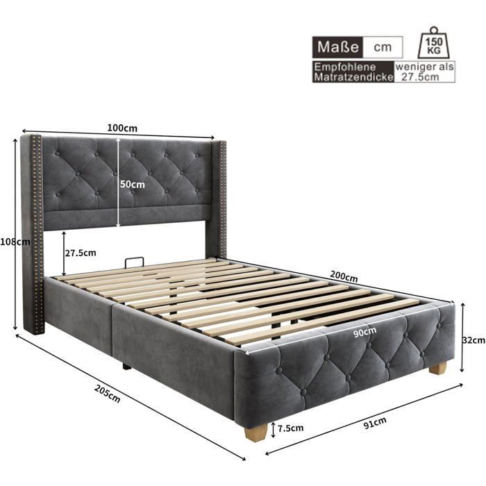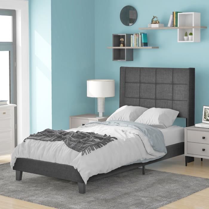 Lit au design élégant et intemporel, doté d’un haut dossier et de pieds noirs, s’intégrant parfaitement à tout intérieur. Structure stable : le cadre du lit rembourré est stable, facile à monter et la surface de couchage du lit mesure 90 x 200 cm. Les lattes en bois minimisent le bruit pendant votre sommeil et prolongent la durée de vie de votre matelas Structure robuste en MDF et acier, lattes fixées par Velcro pour un montage facile, un maintien solide et un sommeil silencieux, alliant confort, stabilité et durabilité. Le chanvre est naturellement respirant, tandis que le MDF assure une longévité optimale, combinant confort et durabilité. Les pieds noirs ajoutent une touche d’élégance, transformant votre chambre en un espace raffiné et chaleureux. Matelas 1 Place Lit Adulte 140x200cm Avec 4 Tiroirs Et Sommier à Lattes Lit Velours Lit Capitonne Lit Rembourre Gris Sommier Lattes Velcro Robuste Informations sur le produit : Couleur principale :Gris/Bleu Matériau principal : Bois + lin + métal Style du produit : moderne Type de produit : lit capitonné Pays d'origine : Chine Capacité de charge maximale: 100kg(90x200)/200kg(140x200) Taille du produit : 90x200cm lit (B x T x H) :97x208x111cm 25kg 140x200cm lit (B x T x H) :146x208x111cm 29kg Convient à la taille du matelas: 90x200cm/140x200cm Remarque : ✅Toutes les dimensions sont approximatives,Des erreurs de 2 à 3 cm peuvent se produire. Confort silencieux : Grâce à une fixation équidistante des lattes par bandes Velcro, les frottements et les bruits désagréables sont éliminés. Ce système empêche également la matelas de glisser, assurant un maintien parfait et sécurisé. ✅Ce produit ne comprend pas de matelas ✅Nos produits sont accompagnés d'instructions de montage claires afin de faciliter et d'accélérer l'assemblage. Lit capitonné de style européen-90*200cm-avec sommier à lattes en bois Si vous avez des questions ou des problèmes, veuillez nous contacter immédiatement. Lit au design élégant et intemporel, doté d’un haut dossier et de pieds noirs, s’intégrant parfaitement à tout intérieur. Structure robuste en MDF et acier, lattes fixées par Velcro pour un montage facile, un maintien solide et un sommeil silencieux, alliant confort, stabilité et durabilité