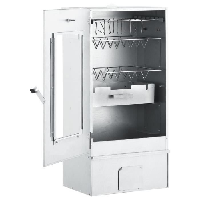 Fumoir en acier Aluminé de 85cm de hauteur - Peetz Il est possible d'adapter une résistance sur le fumoir pour réaliser facilement du fumage à chaud. Avec Thermomètre Accessoires Capri Lampe En Laiton Petit Modèle Sans Abat-jour- Mis En Demeure Fourni Grille Support Fumoir Acier Aluminée : 75 x 39 x 21 cm Fumoir de 75 cm de hauteur assez grand pour pouvoir accueillir 3 poissons (taille moyenne) en vertical. Une fois démarrée la sciure brûle comme de l'encens et permet de réaliser du fumage à froid. Fumage à chaud (de 40 à 90°C) : Une coupelle plus grande permet d'accueillir du charbon et/ou des copeaux de bois pour permettre de fumer les aliments à chaud. La partie haute du fumoir est équipée dun thermomètre, pratique pour suivre la température lors de votre fumage. Possède aussi un clapet daération pour garder la main sur la température Petit fumoir au meilleur prix | Leroy Merlin Le thermomètre, indispensable, permet de s'assurer que la température reste idéale que l'on soit en fumage à chaud ou froid. Grâce à ce fumoir Il est possible de réaliser plusieurs types de fumage : Fumage à froid (en dessous de 35°C) : Une petite coupelle est fournie pour accueillir la sciure. Ce fumoir est fourni avec une grille de support afin de pouvoir adapter des crochets de suspension.