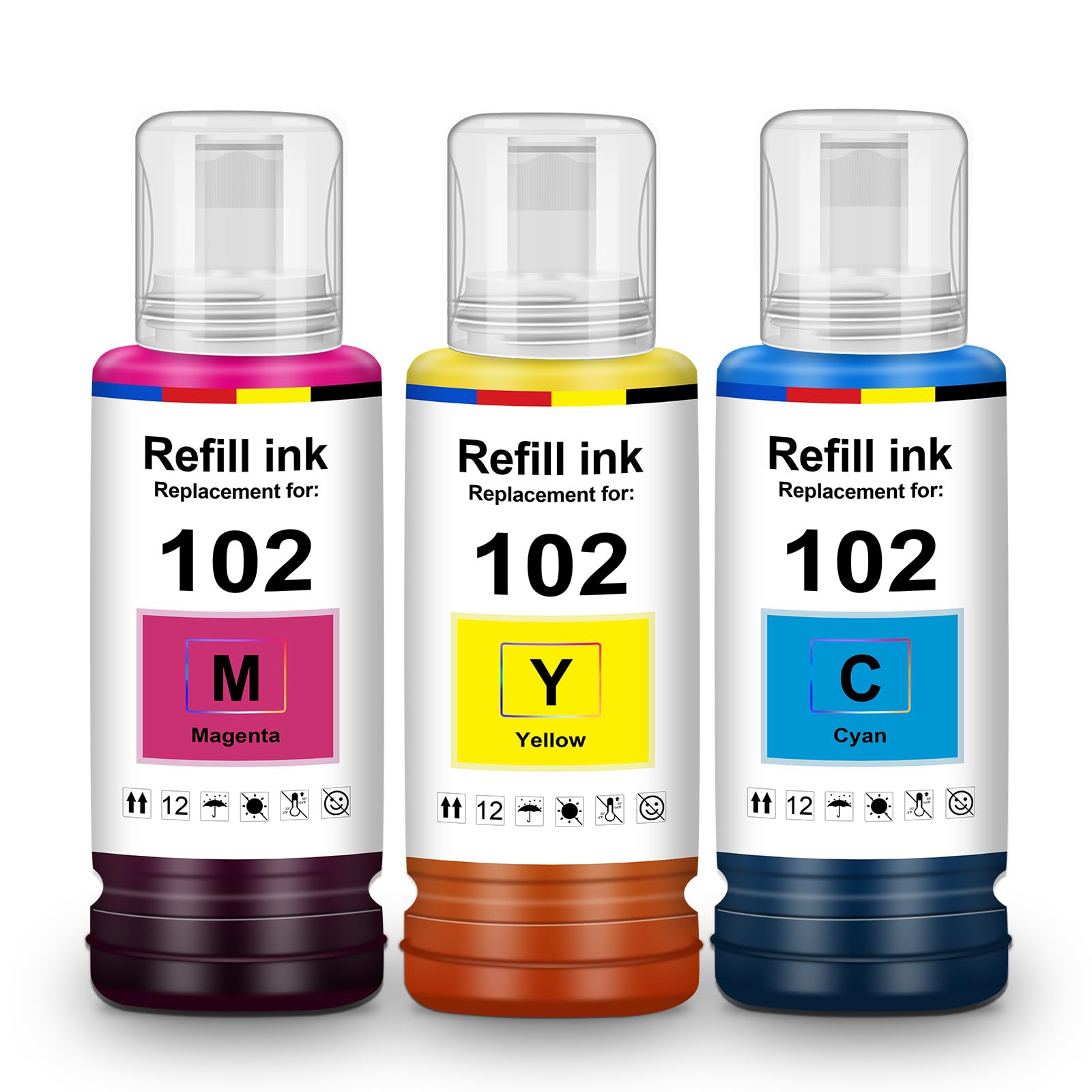 Encre Compatible Epson LAIPENG 102 Encre Compatible Avec Epson 102 Pour Ecotank ET-2700 ET-2750 ET-2751 ET-2756 ET-2850 ET-2851 ET-2856 ET-3700 ET-3750 ET-3850 ET-4750 ET-4850 ET-4856 ET-15000 Imprimante (2 Noir Epson 102 Ecotank Nos bouteilles d'encre compatibles sont une alternative aux bouteilles d'encre originales E102., 2., Rendement : Haute capacité. Cette encre InkTec est entièrement compatible avec l'encre Epson 102 et le pack comprend déjà les adaptateurs pour introduire l'encre dans votre imprimante Ecotank de manière propre et confortable SHUOLEI 102 Encre Compatible avec Epson 102 Bouteille d'encre Multipack pour ET-2700 ET-2750 ET-2751 ET-2756 ET-2850 ET-2851 ET-2856 ET-3700 ET-3750 ET-4750 ET-4850 ET-4856 ET-15000 (4-Pack,BK C M Y Stockage : Température entre 10 et 30 degrés Celsius, humidité relative 20-80%. Couleur et code : Code multipack : C13T03R640 ; Noir : C13T03R140 ; Cyan : C13T03R240 ; Magenta : C13T03R340 ; Jaune : C13T03R440., 3., Compatible avec les imprimantes: Compatibles avec ET-2700 ET-2750 ET-2751 ET-2756 ET-2850 ET-2851 ET-2856 ET-3700 ET-3750 ET-3850 ET-4750 ET-4850 ET-4856 ET-15000; ET2700 ET2750 ET2751 ET2756 ET2850 ET2851 ET2856 ET3700 ET3750 ET3850 ET4750 ET4850 ET4856 ET15000 Imprimantes., 4., Matériel de haute qualité: nous utilisons de l'encre de qualité, des cartouches en plastique et une puce de données, assurez-vous une imagerie nette et un rendement de page suffisant., 5., Effet d'impression claire: imprimez des images vives qui rendent chaque mot et chaque ligne clairement visible, créant un visuel relaxant pour vous et vos yeux. TOPRINT 4 Color E102 Bouteilles d'encre Compatibles pour E102 Encre ET Cela n'affecte pas leur utilisation., 1., Contenu : TONTINTA E102 Bouteilles d'encre Pack de 8 Multipack, cartouches d'encre compatibles. Spécifications TONTINTA E102 Bouteilles d'encre Pack de 8 Multipack, cartouches d'encre compatibles. Noir E102 (127 ml) : Env., 7 500 pages. 6 000 pages (couverture 5%, A4, lettre, norme ISO/CEI). Cyan, Magenta, Jaune E102 (70 ml) : Env. Note : Les boîtes peuvent différer de l'image (lot de production différent). Emballage : Boîte neutre (boîtes individuelles). Nos bouteilles d'encre compatibles sont une alternative aux bouteilles d'encre originales E102., Compatibles avec les imprimantes : Compatibles avec ET-2700 ET-2750 ET-2751 ET-2756 ET-2850 ET-2851 ET-2856 ET-3700 ET-3750 ET-3850 ET-4750 ET-4850 ET-4856 ET-15000; ET2700 ET2750 ET2751 ET2756 ET2850 ET2851 ET2856 ET3700 ET3750 ET3850 ET4750 ET4850 ET4856 ET15000 Imprimantes.