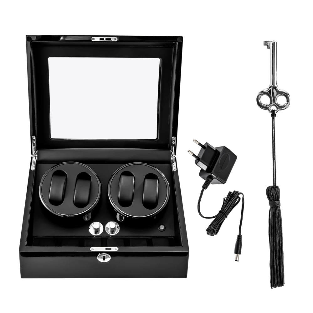 Idéal pour une utilisation nocturne dans les chambres à coucher/bureaux sans perturber l'environnement. 4 modes de rotation: dispose de 4 modes de remontage : OFF, dans le sens horaire, dans le sens antihoraire, alterné et cycle prolongé (3 heures de rotation, 9 heures de repos). Cet élégant remontoir en cuir PU avec couvercle en verre transparent allie à la perfection luxe et design moderne. Avec son moteur Mabuchi extrêmement silencieux, ses 4 modes de rotation et ses fonctions de sécurité intuitives, il protège et met en valeur vos montres avec style Le remontoir à montre automatique permet de maintenir vos montres en parfait état grâce à une rotation simulant le mouvement naturel du poignet. Le remontoir recrée, discrètement, le balancier du poignet Rehaussé par des cadrans dorés, des coussins en mousse à mémoire de forme et un éclairage nocturne doux. Boîte Remontoir Montre Remontoir Montre Automatique 4+6 Moteurs - Boîte PU Avec Moteur Silencieux Moteur Japonais Silencieux Durabilité et protection certifiées : certifié CE et RoHS pour la sécurité et la fiabilité. La construction résistante à l'eau, à la poussière et aux rayures protège vos montres tout en les gardant impeccables et prêtes à être exposées. Montre Automatique Homme Anti-magnétisation Garantie 12 Mois Boîte Remontoir Montre Automatique - Moteur Japonais Silencieux, Cuir PU Remontoir Automatique Horlogerie Boîte Remontoir Cuir PU Moteur Silencieux Conçu pour accueillir divers montres automatiques. Avec son moteur Mabuchi extrêmement silencieux, ses 4 modes de rotation et ses fonctions de sécurité intuitives, il protège et met en valeur vos montres avec style. Il est équipé d'une base en aluminium qui crée un effet de suspension et d'un système de verrouillage intégré qui sert également de poignée discrète.