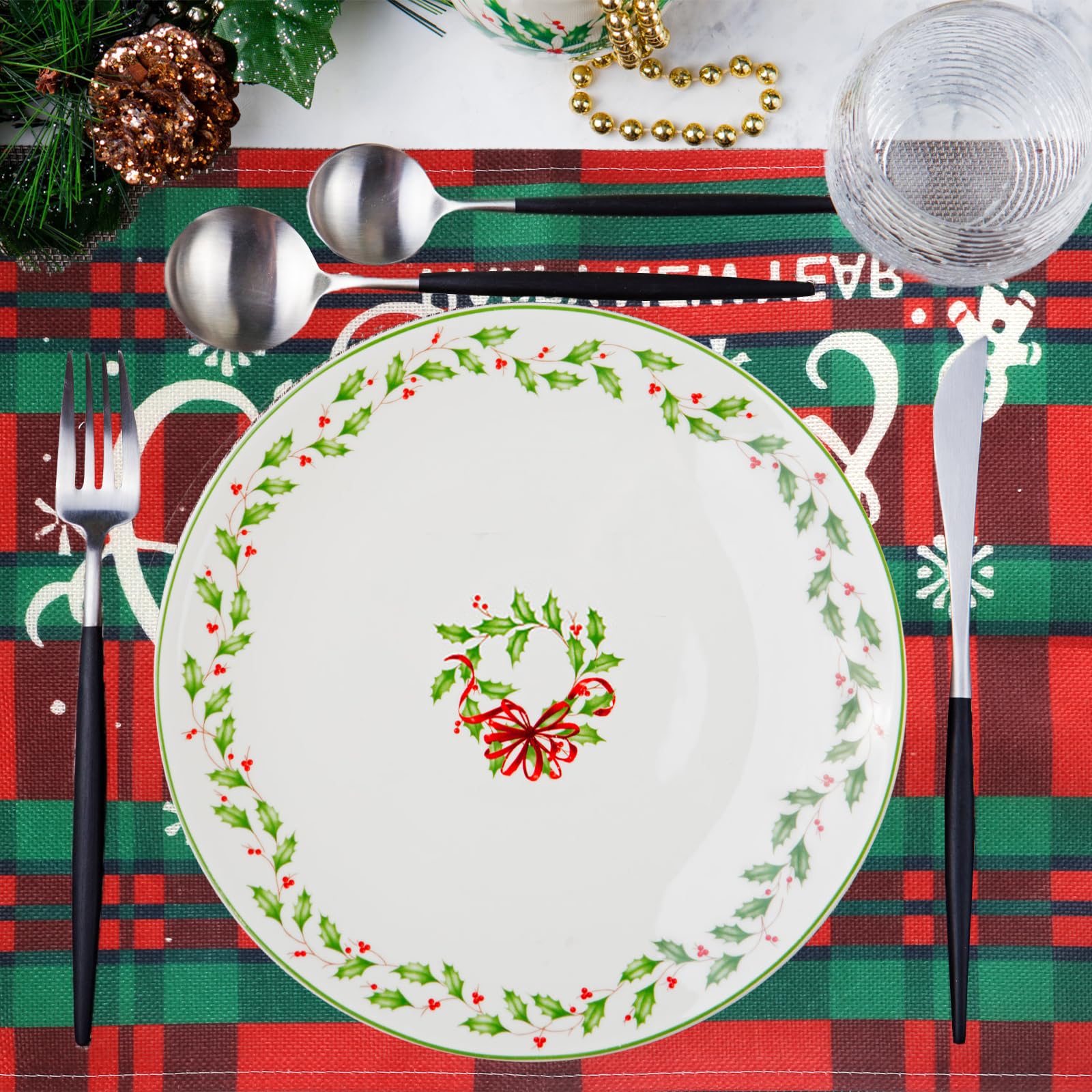ce qui peut créer une atmosphère de Noël joyeuse, et la combinaison de couleurs vives rend le set de table plus unique et attrayant. Set de Table Adhésif lavable photo Imprimé Couleur | Impression Menu 🎄🎁Matériau de haute qualité : Nos sets de table de Noël sont fabriqués en lin de haute qualité, respirant, doux et confortable, antidérapant et antitache, résistant à lusure et durable, peut protéger la table des rayures et des taches, pour une utilisation répétée. 🎄🎁Cadeau de Noël idéal : Nos sets de table de Noël sont conçus de manière unique, composés de carreaux rouges, noirs et verts et dimprimés déléments de Noël. Décoration de bureau de Noël exquise, cest également un cadeau de Noël idéal pour la famille, les parents, les amis, les enseignants et les meilleurs amis. Les sets de table exquis sur le thème de Noël ajoutent à latmosphère joyeuse de Noël et sont idéaux pour les maisons, les cuisines, les restaurants, les bars, les hôtels. Le motif exquis du set de table de Noël correspond à Noël, créant une atmosphère de Noël. Daesar Lot de 6 Set de Table, Set Table Vinyle Set Table Noel Ovale Couleur Unie Tapis de Table Lavable Vert 45x32.5CM Le set de table est imprimé avec des arbres de Noël, des rennes, du Père Noël, des boules de Noël, des couronnes de Noël et des lettres de Noël, un total de 6 motifs imprimés différents. Lorsque vous navez pas besoin du set de table, vous pouvez le plier ou le rouler et le ranger dans une armoire de rangement, économisant ainsi de lespace dans votre maison. 🎄🎁Design exquis : Ce set de table de Noël utilise des carreaux rouges, noirs et verts et des imprimés avec des éléments de Noël. Déco table Noël Homescapes propose une large sélection de linge de table et de cuisine pour parfaire la décoration de votre table de Noël. Les serviettes de table, le chemin de table et la nappe assortis à ces sets de table sont également disponibles Décoration Table Fête ABAKUHAUS Sets De Table De Noël, Étoiles Paillettes Neige, Décoration De Table En Tissu Lavable Pour Salle à Manger Et Cuisine, Impression Numérique, Gris Blanc Rouge Cadeau Noël Fait Main Vous pouvez utiliser des sets de table de Noël pour des fêtes ou des rassemblements de Noël, etc.