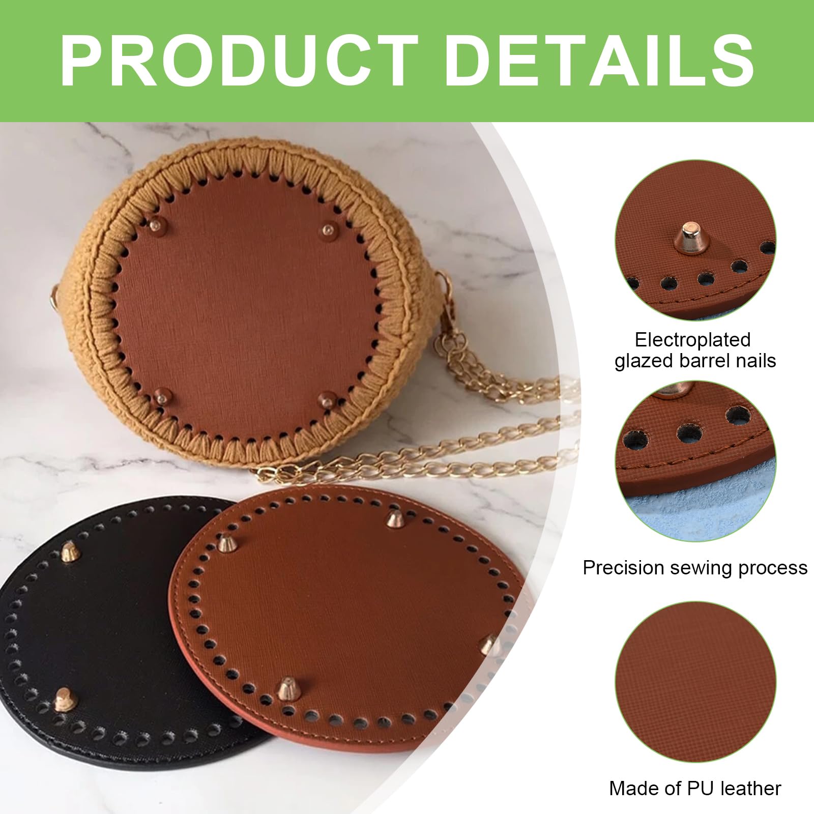 Remarque : Les mesures étant prises à la main, les tailles indiquées peuvent varier de 1 à 2 cm. Excellent pour les projets de sacs et sacs de crochet tissés à la main, parfait pour les amateurs d'artisanat. Fond de sac rond en cuir synthétique pour crochet - Fond de sac à main avec trous - Excellent accessoire pour la fabrication et la réparation de sacs à main Mister B Cagoule Sac avec Collier et Trous pour le nez La couleur de l'article peut varier de celle de la photo, en fonction des paramètres d'affichage et de luminosité de votre ordinateur. Sac à main,Sacs à main en cuir PU 52 trous pour femmes,bricolage,pour Fabriqué en polyuréthane de haute qualité, réutilisable, durable, confortable au toucher et facile à nettoyer. Excellent pour les projets de sacs et sacs de crochet tissés à la main, parfait pour les amateurs d'artisanat Cuir Synthétique Trous DIY Lot De 2 Fonds De Sac à Crochet En Cuir Synthétique Pour Sac à Main, Moule De Sac, Coussin De Coussin, Fond De Sac Avec Trous Pour Sacs à Tricot, Sacs à Main, Fabrication De Sacs à Bandoulière Fond Pour Sac Au Crochet Caractéristiques : Matériau : polyuréthane. Caractéristiques : Produit neuf et Matériaux PU de haute qualité, réutilisables, durables, confortables au toucher et faciles à nettoyer. Cette base inférieure de sac est conçue avec 48 trous et 4 clous, ce qui peut protéger le fond de votre sac contre les dommages afin de rendre votre sac plus stable.