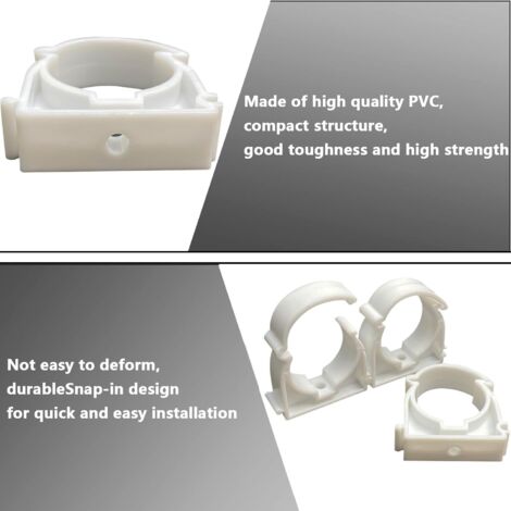 Crochet plastique P-Clip - Diamètre 20mm - A l'unité Lot Colliers U Blancs 20pcs Clips Colliers De Serrage 16/20/25/32mm Tuyau En Forme De U PPR Pince Tuyau En Plastique En Aluminium Tuyau D'eau Clips Fixes Support De Tuyau D'eau Pince Clips Douille Avec(20mm+screw 20pcs Clips Tuyau 16mm Ils sont parfaits pour installer des conduites d'eau, des conduites de câbles, des conduites de gaz et d'autres accessoires sur les sols ou les murs, offrant une installation sûre et ordonnée. Nom du produit :Siège à boucle en plastique épaissi en forme de UTaille : diamètre intérieur 16 mmMatériau : plastiqueCouleur : blancPoids : 55 gContenu de l'emballage : 20*Siège à boucle en plastique épais en forme de UFonction : Utilisé pour installer des conduites d'eau, des conduites de câbles, des conduites de gaz, des conduites d'eau et d'autres tuyaux sur le sol ou le mur. Ils fixent et protègent efficacement les tuyaux, garantissant une longue durée de vie et des performances fiables. Le collier double pour tube pré-gainé PER de BOUTTÉ est conçu pour un montage facile et sécurisé. Fabriqué en plastique, il offre une excellente durabilité et une résistance adaptée aux installations de plomberie La conception à clipser permet une installation rapide : il suffit de le visser et d'insérer le tuyau dans la rainure en forme de U. Retrouvez ici les colliers de plomberie qui servent à fixer les tuyaux et les tubes d'alimentation en eau aux murs, aux plafonds ou autres surfaces planes. Ainsi, les tuyaux restent bien en place au fil du temps, même sous l'effet de chocs et de vibrations Outils de plomberie pratiques :Ces pipe à eau clip sont essentiels pour les projets de plomberie domestiques. Matériau de haute qualité :Ces clips de tuyau en plastique sont fabriqués en plastique ABS de haute qualité, compacts et difficiles à casser.