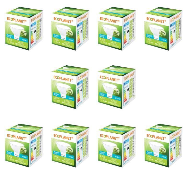 Tension d'entrée CA 12 V, 220 V , Couleur Blanc chaud Certificats pertinents CE, RoHS, SAA, FCCTempérature de couleur 3000~6000KAngle de faisceau 35°IRC 90Matériau VerreProtection de sécurité Protection contre les surintensités, protection contre les courts-circuitsProtection contre les surtensions Protection contre les surtensions haute tensionTaille 50x45mm Flux optique 100-500LM Lot 3 Ampoules 3000-6000K GABRIELLE Lot De 6 Ampoules Halogènes MR16 12V 50W GU5.3 à Deux Broches Lot 3 Ampoules MR16 3000-6000K Lot de 10 Ampoules LED 12 Volts MR16 / GU5.3 d'une puissance de 6W. Éclairage réel équivalent à 50W - puissant et grand angle (120°). Très économique, catégorie A Linkind Apoules LED GU5.3 R16 12V, 5W Equivalent à 50W Lape... Ampoule variable led dépoli réflecteur GU10 230 Lm = 35 W blanc neutre