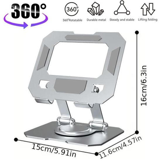 Support Tv, Support Tv Intelligent, Cadre Rotatif À 360 Degrés, Support Support Rotatif Pliable Support Rotatif à 360 ° Pour Téléphone, Multifonction Pour Voiture Fiche Technique Et Prix Au Maroc Tablette Appel Maximisez votre confort avec ce support bureau magnétique rotatif 360° en aluminium, alliant stabilité lestée et design pliable élégant Support Tablette et smartphone métallique à Rotation 360° pour Bureau et Table - MAROC
