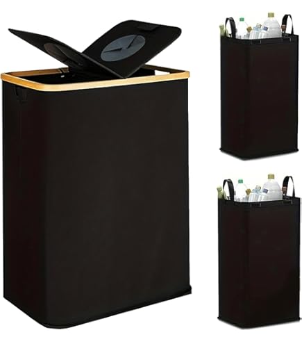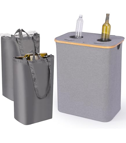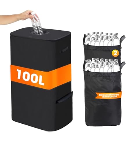 Poubelle de tri sélectif design et mobile avec 2 ou 3 compartiments Bac A Verre 85L Collecteur De Bouteilles, Poubelle Tri Selectif Pour Plastique Bouteilles Verre Poubelle Exterieur De Recyclage Avec Poignee En Aluminium Poubelle Cuisine Rangement De Bouteilles Noir Poubelle De Trie Favorise le recyclage, facilite le tri des déchets et permet d'économiser de l'énergie. GRANDE CAPACITE ORGANISATION EFFICACE : Capacité de 160 litres, 3 poches intérieures amovibles, adaptées au recyclage des bouteilles en verre, des bouteilles en PET et des canettes. 4 tiges en fibre de verre + fixation Velcro, ne se renverse pas. Poubelle tri sélectif 3 compartiments | Contact CEGEQUIP SACS DE TRANSPORT DÉMONTABLES POUR UN TRANSPORT FACILE : Poubelle de Cuisine avec couvercle en tissu durable, 3 poches intérieures lavables (tissu Oxford) peuvent être collectées séparément pour un remplacement et un nettoyage faciles. GRANDE CAPACITE ORGANISATION EFFICACE : Capacité de 160 litres, 3 poches intérieures amovibles, adaptées au recyclage des bouteilles en verre, des bouteilles en PET et des canettes Le sac de transport pratique est facilement amovible et le sac intérieur est lavable en machine, hygiénique et facile à nettoyer. Poubelle Tri Sélectif pour Cuisine avec deux compartiments séparés pour les bouteilles en matériaux différents, facile à trier.