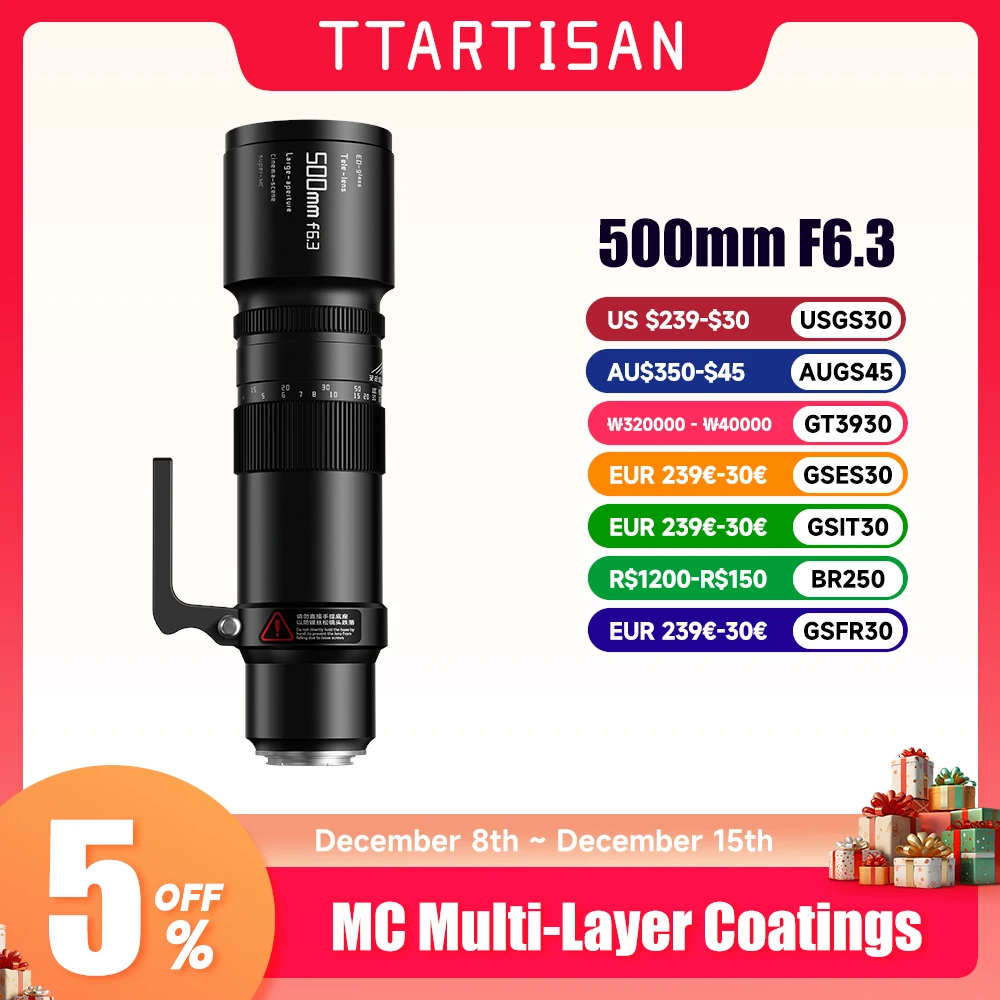 Téléobjectif TTArtisan 500mm f/6.3 TTArtisan Téléobjectif 500mm f6,3 pour Fujifilm GFX - Foto Erhardt Objectif à mise au point manuelle 500 m F6., 3 en métal avec bague de montage Tripd Objectif à mise au point manuelle 500 m F6.3 en métal avec bague de montage Tripd Deux verres ED (dispersion extra-faible), un bon contrôle du coma et l'ouverture F6.3 vous aident à capturer de superbes objets du ciel profond dans le ciel nocturne avec une aberration chromatique réduite Ttartisan Fuji X TTArtisan Téléobjectif 500 Mm F6.3 Corps En Métal Compatible Avec Téléobjectif Manuel Monture Gfx Excellent design optique : 8 éléments en 5 groupes, dont 2 éléments à indice de réfraction élevé, qui peuvent contrôler efficacement les aberrations sphériques.