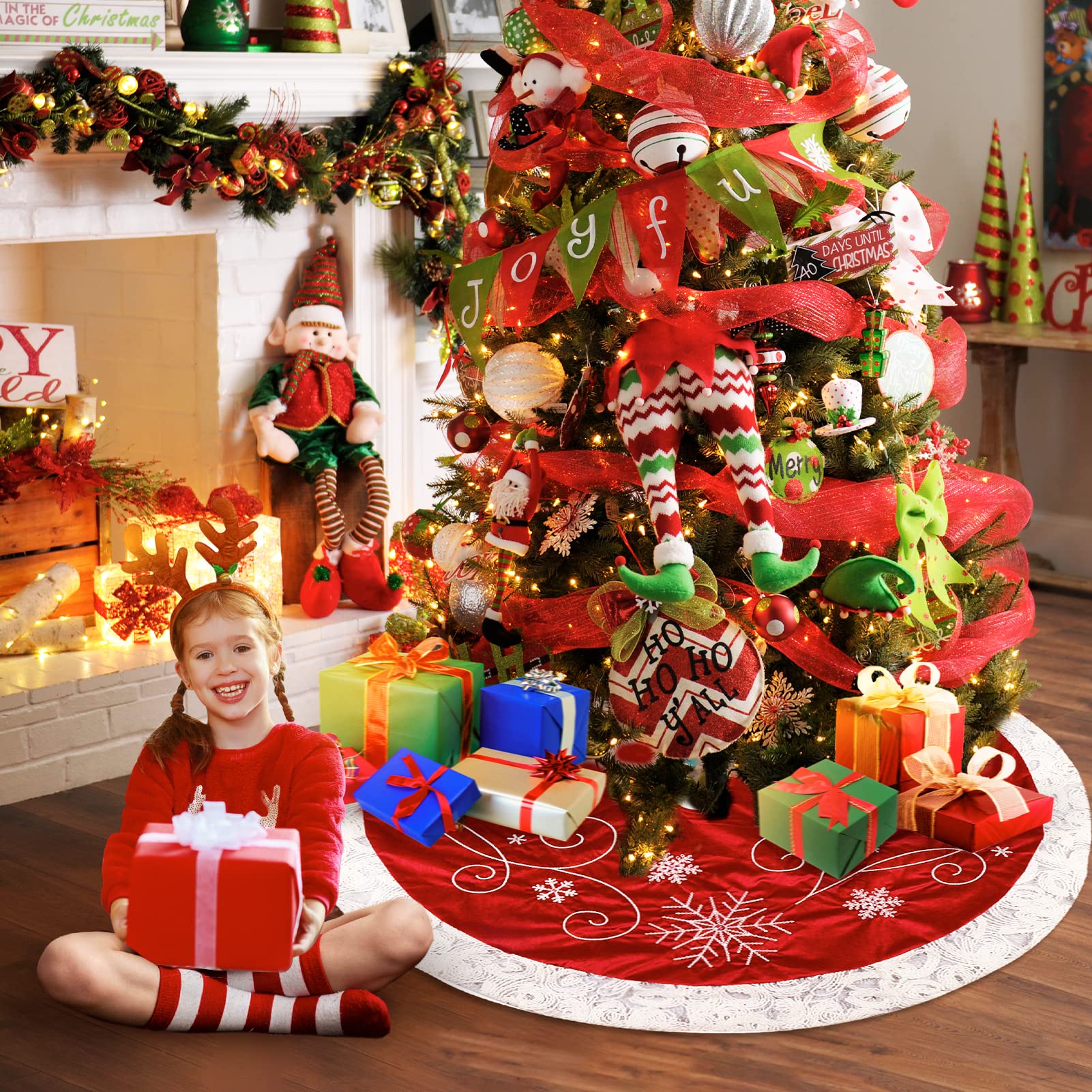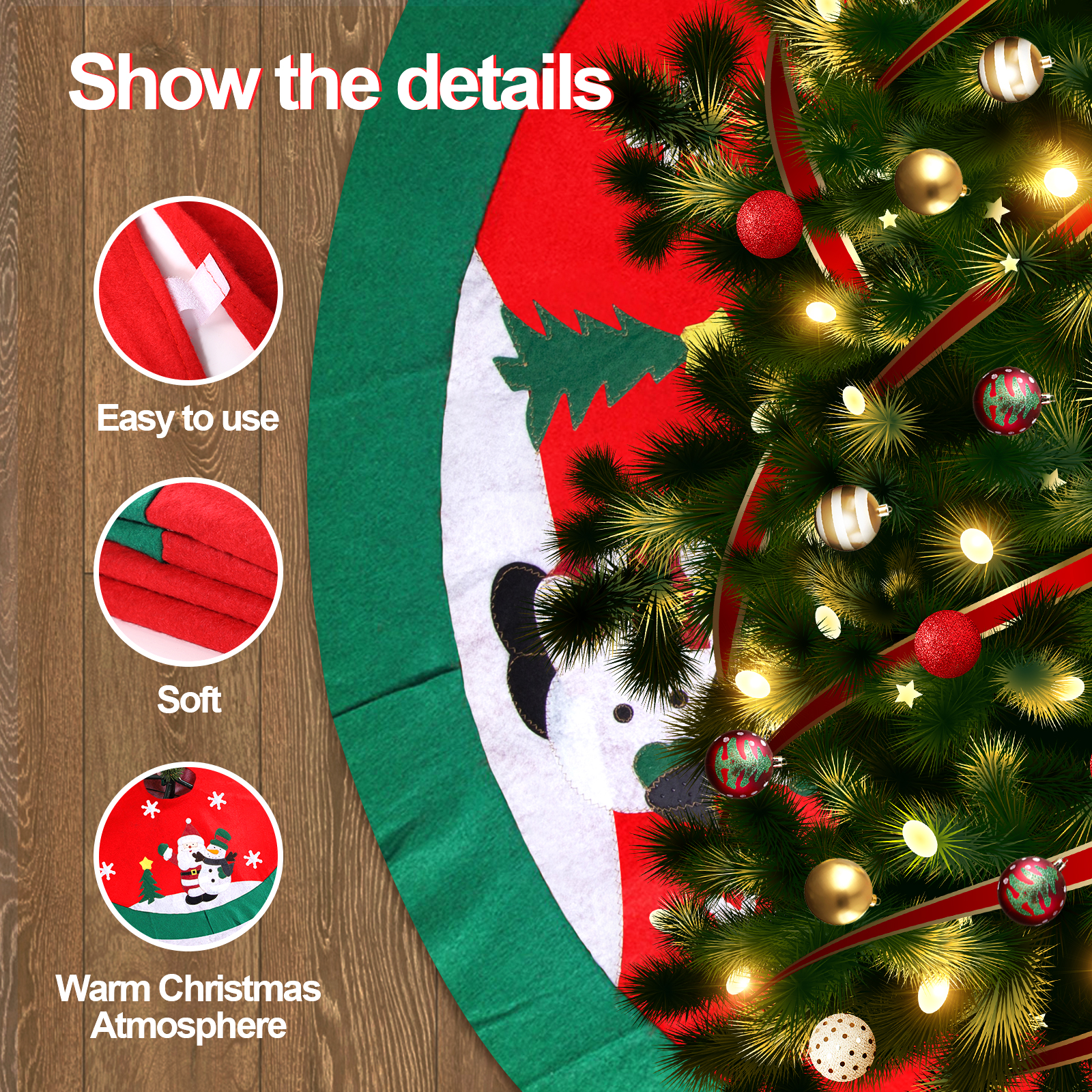 【Taille】: De taille généreuse de 120 cm de diamètre, offrant une couverture suffisante pour la décoration sous l'arbre 【Design】: Améliorez votre décoration de Noël avec cette jupe d'arbre de Noël, conçue pour ajouter une touche d'élégance et de chaleur à votre configuration d'arbre de Noël 【Facile à utiliser】: Facile à installer et à retirer - fixez-le simplement autour de la base de votre arbre pour un charme festif instantané et une installation facile Accessore pour sapn de Noël | Chrstmas hangng decoratons, Chrstmas tree decoratons 【Caractéristiques】: Le design classique crée une atmosphère de vacances chaleureuse et met magnifiquement en valeur votre sapin de Noël, adapté à la plupart des arbres de taille standard High Quality Soft Materials]Cette jupe de sapin de Noël est faite de peluche artificielle de haute qualité et durable. Le matériau est doux et confortable au toucher et créera une atmosphère chaleureuse et agréable dans votre maison Jupe Sapin Noel Christmas Tree Skirt 90cm Noël Couverture Décorative D'arbre Jupe De Noël Rouge Facile Installer Sapin de Noël décoratif, sapin décoratif avec cônes et roses en tissu, superbes