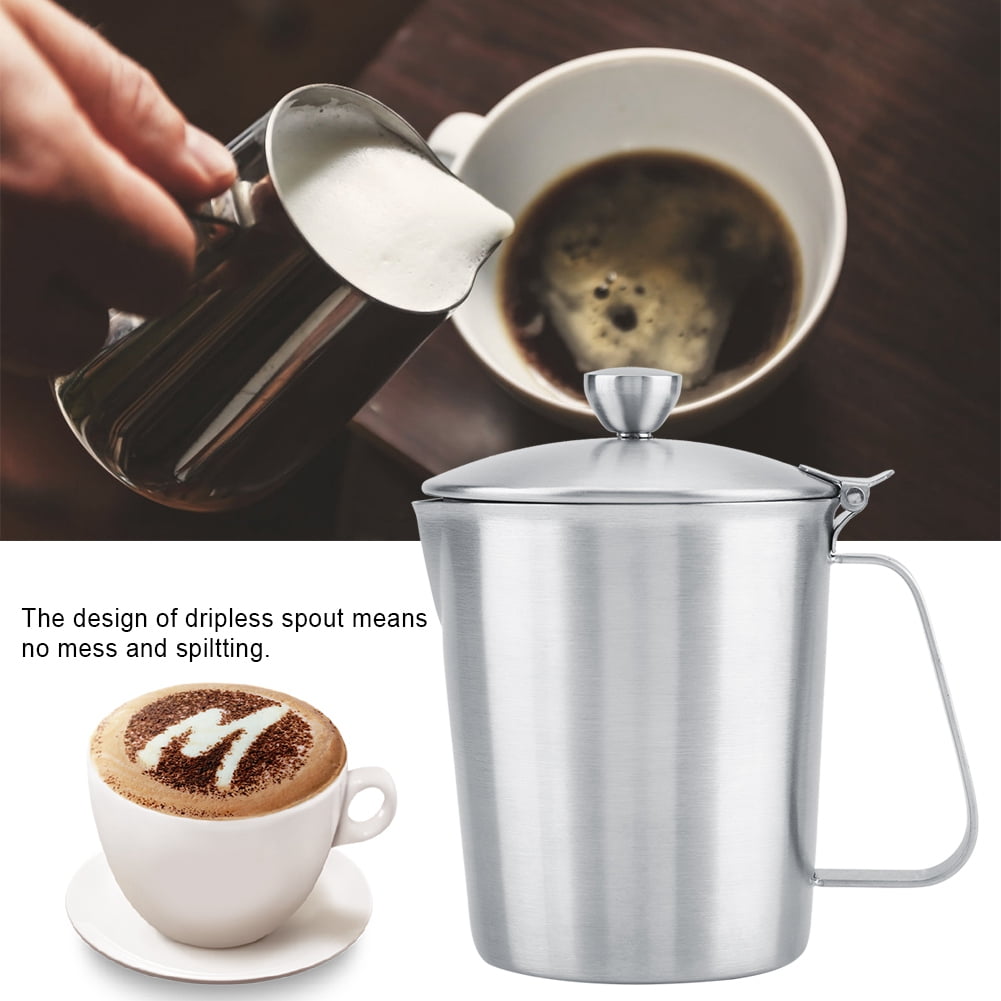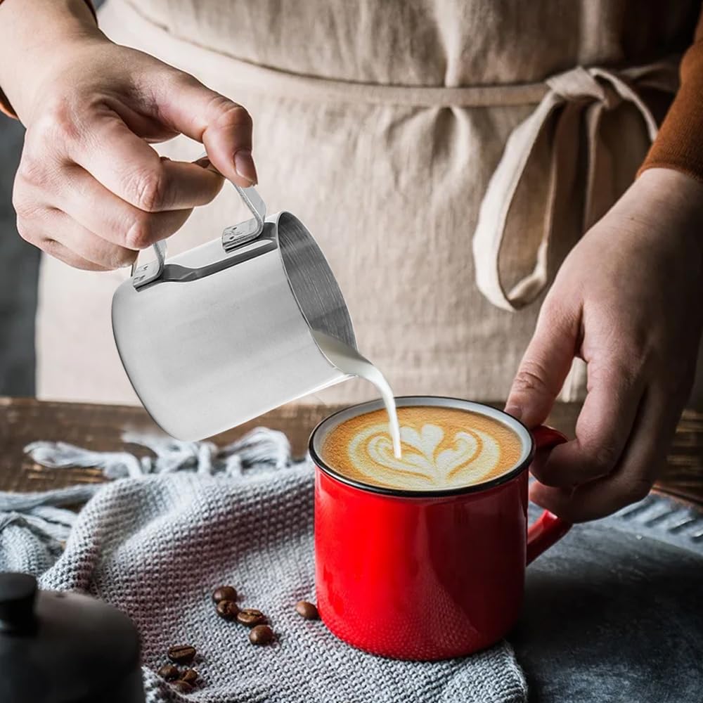 Cafetière - YOSOO - 250ml - Acier Inoxydable - Bec Verseur Long - Sans Couvercle - Maison En raison de différentes mesures manuelles, veuillez permettre une différence de taille de 1 à 2 cm. Mugue à Lait Inox Bouilloire à Verser Le Café En Acier Inoxydable 304 Avec Couvercle, Cafetière à Long Bec Verseur Pichet Lait Latte Art Acier Inoxydable Fabriqué en acier inoxydable robuste, ce pichet à vapeur pour cappuccino est conçu pour créer des décorations artistiques sur les cafés latte dans n'importe quel environnement. Technologie de Précision: Procédé de moussage du lait seamless avec contrôle précis, grip ergonomique et bec courbé pour versement facile et réduction des pertes Fonction Mousseur Adaptable: Conçu pour une utilisation polyvalente, cette tasse mousseuse est parfaite pour réaliser des lattes, mousser le lait, ranger des épices ou distribuer des sauces, répondant à vos besoins culinaires avec simplicité et efficacité Promo Adblue Avec Bec Verseur Théo chez Cora 400 ml Cafetière en acier inoxydable avec poignée et bec verseur pour art du latte, pichet à Grâce à sa durabilité et son design fonctionnel, il permet une utilisation polyvalente au quotidien. Sécurité Renforcée au Versement : La conception ergonomique et la structure isolante thermique de cette verseuse à lait empêchent efficacement les brûlures pendant le versement des préparations lactées chaudes, un contrôle précis et un confort d'utilisation optimal Ce pichet de bar à crème devient rapidement indispensable pour les amateurs de café qui souhaitent réaliser des préparations soignées et élégantes.