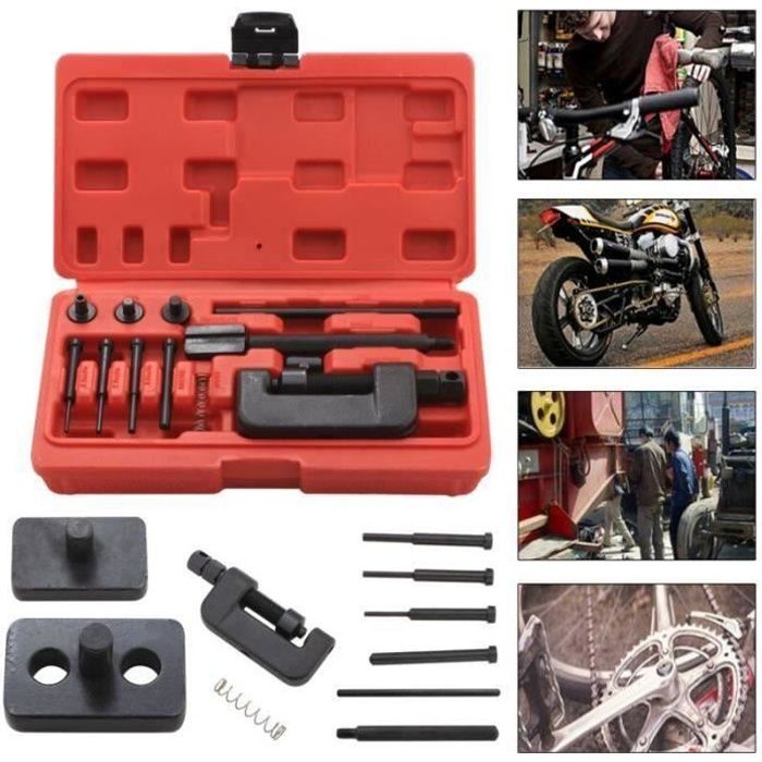 Disjoncteur Chaîne Acier Allié Dé 3.8 Mm BOOSTART 13 Pcs. Disjoncteur De Chaîne De Oto Disjoncteur De Chaîne Pince à Chaîne Acier Allié Anti-rouille et la est traitée avec un traitement spécial, la rend antirouille et Il a été minutieusement testé de qualité avant l'expédition pour assurer un produit . Cikonielf Enlèvement de rivet Kit d'outils de coupe de rivet de... Disjoncteur de chaîne universel, en acier, robuste et durable. La goupille de pression remplaçable est traitée thermiquement et durcie, pas facile à endommager Convient pour: La riveteuse de disjoncteur de chaîne de moto convient à l'outil de rupture de chaîne/disjoncteur/de retrait de lien. Vous pouvez l'acheter sans souci. Outil de chaîne de moto enlèvement de chaîne de disjoncteur d'entraînement séparateur de coupe outil de réparation de lien pour moto vélo ATV, Bagages et accessoires,kit de réparation d'outils Ce sera votre très bon choix. Spécification : Matériau: acier allié Diamètre du dé: 3,8 mm Correspond parfaitement à vos véhicules d'origine, adapté aux tailles de chaîne comprend 420/428/520/525/528/530., Un disjoncteur de chaîne de moto est inclus dans l'emballage, le poids total du colis est d'env., 333g/11,7 oz. Poids du colis: env., 333 g/11,7 oz Le diamètre du dé à coudre est de 3,8 mm. Matériau de Le kit d'outils de disjoncteur de chaîne de moto est fabriqué dans un matériau de qualité avec une trempe fine, une haute résistance, une résistance et une robustesse. Couleur: montrée comme image