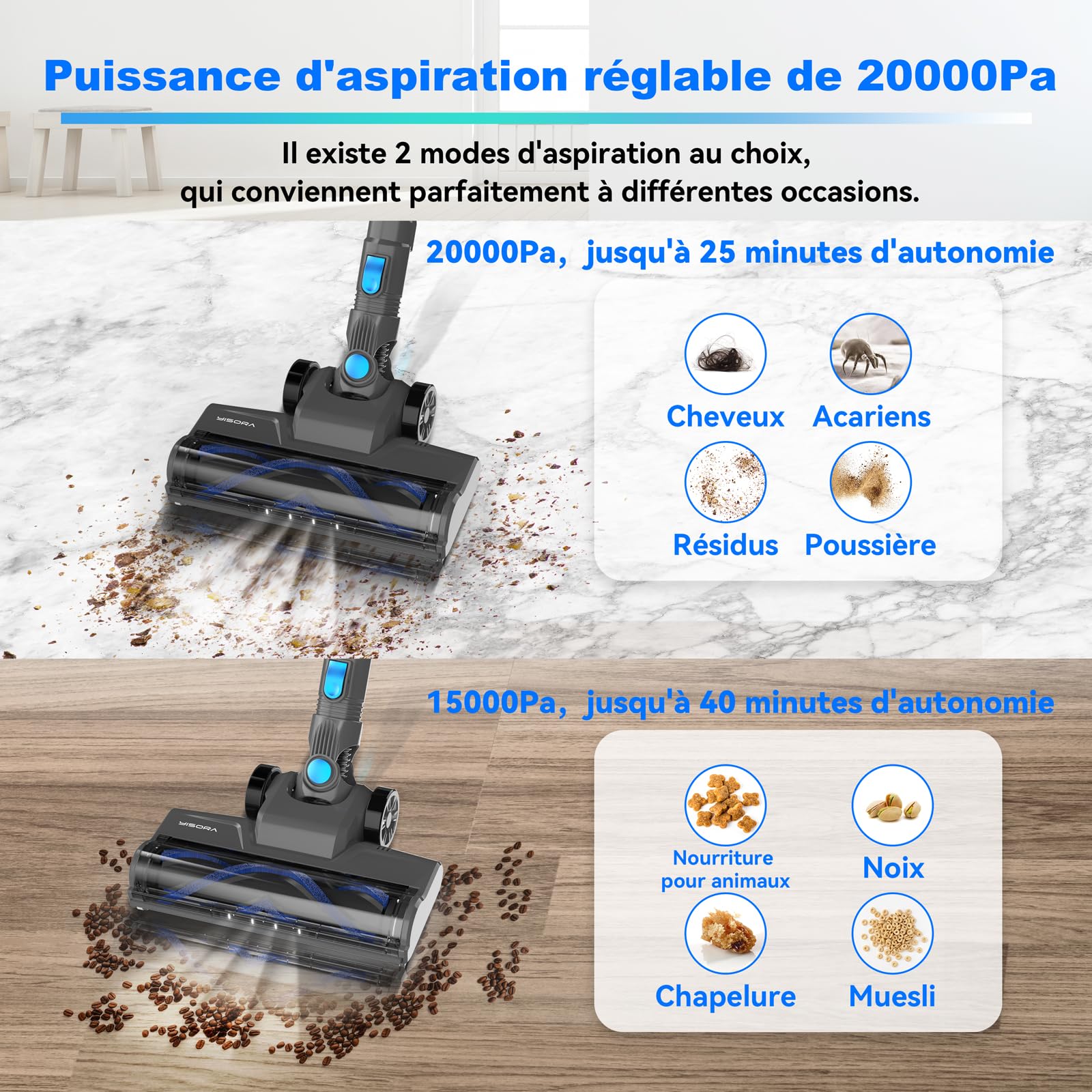 Aspirateur Léger Main 50 Min Autonomie Aspirateur Balai Sans Fil V8Pro, Aspirateur Sans Fil Puissant 25Kpa, 4 Aspirateur 25KPa Autonomie 【Garantie sans souci & service clientèle amical】Offre 24 mois de service après-vente et d'assistance technique pour l'aspirateur sans fil. YISORA Aspirateur Balai à ain sans Fil sans Sac N300, 20KPa & 2... Quel est le eilleur aspirateur balai sans fil ? - Sarau - Guide d'achat 【Designr de rouleau en forme de V & 4 lumières LED】Équipé de 4 lumières LED et la tête de brosse de l'aspirateur sans fil peut également pivoter de 180° vers la gauche et la droite et de 90° vers le haut et le bas, ce qui lui permet d'atteindre facilement le dessous du lit et de la table et de retirer la poussière. Si vous avez des questions ou si les accessoires de l'aspirateur sans fil sont endommagés, vous pouvez toujours nous contacter. M242 Aspirateur Balai sans Fil 25kPa[m504] - Electroménager Remarque : le bac à poussière, les tapis filtrants et les filtres peuvent être lavés à l'eau, mais veuillez attendre qu'ils soient parfaitement secs avant de les installer afin d'éviter que l'eau ne pénètre dans le moteur. 【25KPa puissance d'aspiration & 50 minutes d'autonomie】L'aspirateur sans fil ne pèse que 1,8 kg et est parfait pour une utilisation à une main. 【6 en 1 aspirateur à main & aspirateur à tige】 L'aspirateur balai est livré avec 3 brosses différentes qui peuvent être facilement assemblées en 6 combinaisons pour des nettoyages polyvalents, comme un aspirateur à main qui convient très bien aux canapés, voitures et pièces. 80-105CM Tube métallique rétractable pour un réglage pratique de la hauteur. L'aspirateur convient pour le nettoyage de grands sols et de tapis dans les salons, les cuisines, les chambres à coucher et autres endroits. 【Système de filtration à 5 niveaux & filtre lavable】L'aspirateur balai sans fil est équipé d'un système de filtration cyclonique à 5 niveaux entièrement scellé, capte 99,99% des grosses particules et des micropoussières. La tête de brosse motorisée a une conception de rouleau en forme de V-24*10CM, ce qui réduit le problème de l'enchevêtrement des cheveux. L'aspirateur adopte un moteur sans balai avancé de 175W (37000 tr/min), génère 25000Pa de forte puissance d'aspiration en mode MAX.