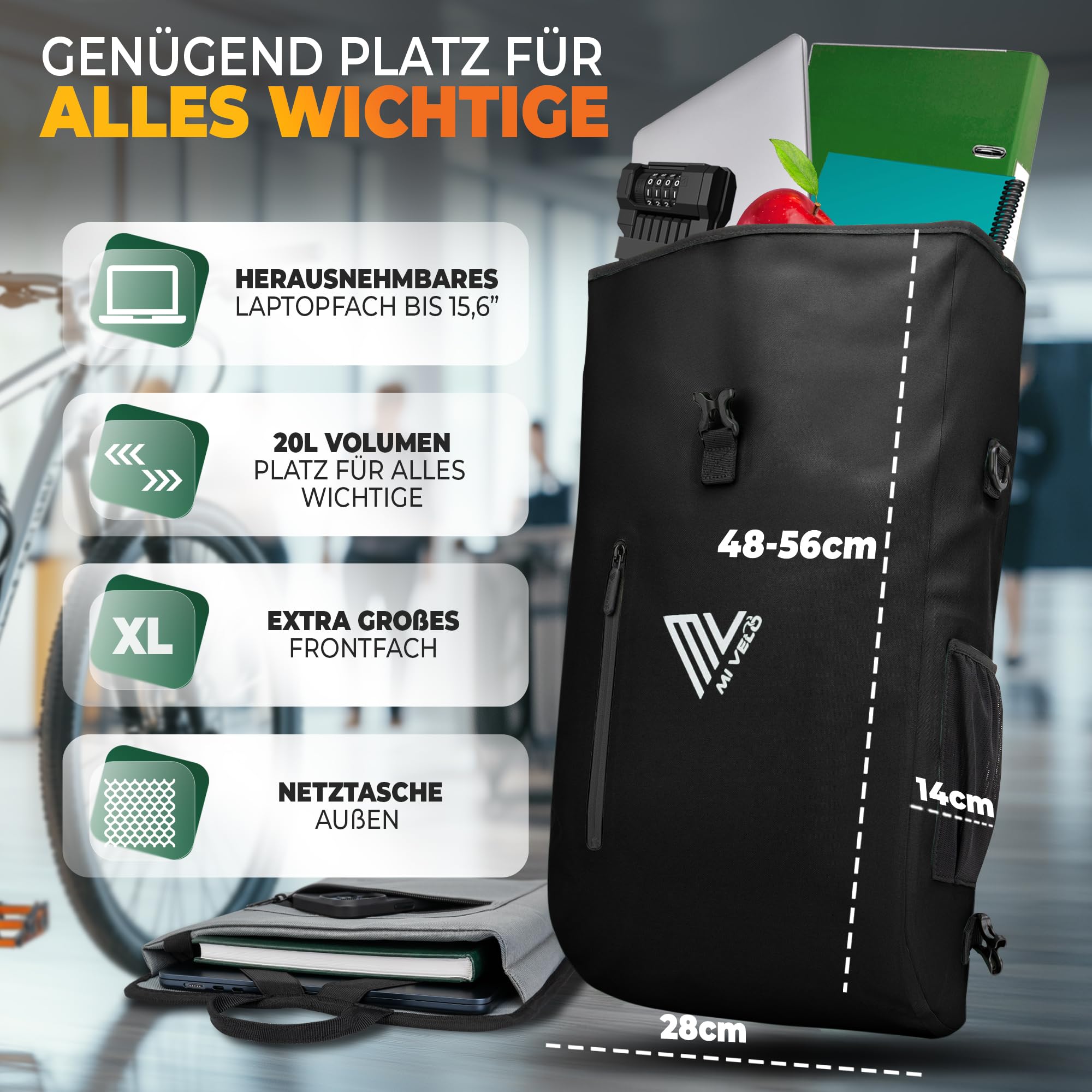 Les sangles cousues permettent de suspendre des bâtons de randonnée et autres accessoires. La conception 3 en 1 de la sacoche vélo sac à dos répond aux besoins des cyclistes, voyageurs, salariés, étudiants et de tous ceux qui recherchent fonctionnalité et praticité. 3 en 1 Sac à Vélo Polyvalente : Véritablement polyvalent, ce sac se transforme facilement en sacoche vélo arrière pratique, en sac à dos confortable ou en sac bandoulière décontracté Capacité Spacieuse & Design Élégant : Ce sac à dos multifonctionnel offre une capacité généreuse de 25 litres (68*28*17CM), idéale pour le cyclisme, la randonnée, les activités outdoor, le travail ou les études La bandoulière de la sacoche vélo sac à dos est équipée d'un rembourrage pour un confort optimal. Borgen sacoche de porte-bagages, 25 l, 100 % étanche, poignée de Rangement&Sécurité: La sacoche porte bagage vélo multifonctionnelle est équipée de multiples poches intérieures et extérieures et un compartiment amovible pour ordinateur portable afin de garder les choses bien rangées et rapidement accessibles. Les poches latérales en filet accueillent gourdes et parapluies, tandis qu'une autre poche offre un espace de rangement supplémentaire. Sacoche Arrière Vélo T Taille KEEPIFY Sacoche Vélo 3en1, 25L Sac à Dos Étanche Avec Compartiment Sacoche Vélo étanche La poche du sac à dos étanche extérieure avant est dotée d'une fermeture éclair étanche pour une protection accrue contre les éclaboussures et les fortes pluies. Capacité Spacieuse & Design Élégant : Ce sac à dos multifonctionnel offre une capacité généreuse de 25 litres (68*28*17CM), idéale pour le cyclisme, la randonnée, les activités outdoor, le travail ou les études. 3 en 1 Sac à Vélo Polyvalente : Véritablement polyvalent, ce sac se transforme facilement en sacoche vélo arrière pratique, en sac à dos confortable ou en sac bandoulière décontracté.