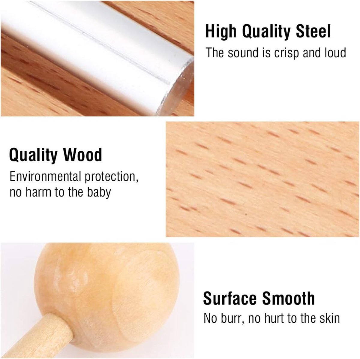 Matériau : aluminium + bois. Tambourin en plastique pour enfants de la maternel... – Grandado Matériau du cadre en bois : hêtre Matériau du bâton : hêtre Couleur: couleur bois + argent Numéro de barre en acier : 3., Taille:18., 5*8cm Contenu de l'emballage : 1 x carillon en bois., 1 maillet. Prend en charge l'éducation musicale précoce : un outil simple mais efficace pour promouvoir le sens du rythme, la coordination œil-main et l'intelligence musicale. Son longue durée (plus de 20 secondes) favorise la tranquillité et l'équilibre intérieur - parfait pour tout environnement où la pleine conscience compte. Son Doux Et Durable Apaisant Fdit Instruments De Percussion Instrument De Percussion à 3 Tons Avec Jouet éducatif Musical Outil Classe Enseignant Instrument de son de haute qualité avec des sons harmonieux : notre bâton de chant est composé de trois tiges en aluminium poli argenté sur une base en bois massif robuste (au choix en 18,5 x 8 cm ou 17,5 x 5 cm). Le bâton de chant offre une entrée ludique dans le monde de la musique et est idéal pour les cours de musique. Polyvalent : que ce soit pour le yoga, les bains sonores, les projets scolaires ou comme départ conscient lors de réunions, ce bâton sonore pour enseignant crée une atmosphère paisible. Parfait pour les enseignants et l'utilisation en classe : ce bâton sonore pour enseignant est excellent pour signaler le calme et l'attention en classe. Chime Bar Meinl Percussion Hand Held Chimes - Large Musical Instrument With 24 Sound Bars - Hand-Played - With Holding Ring - Aluminum, Gold (CH-H24 Ring Chine La construction robuste assure une longue durée de vie - Que ce soit à la maison, à l'école ou en groupe. Cowbell cloche professionnelle en métal avec manch... – Grandado