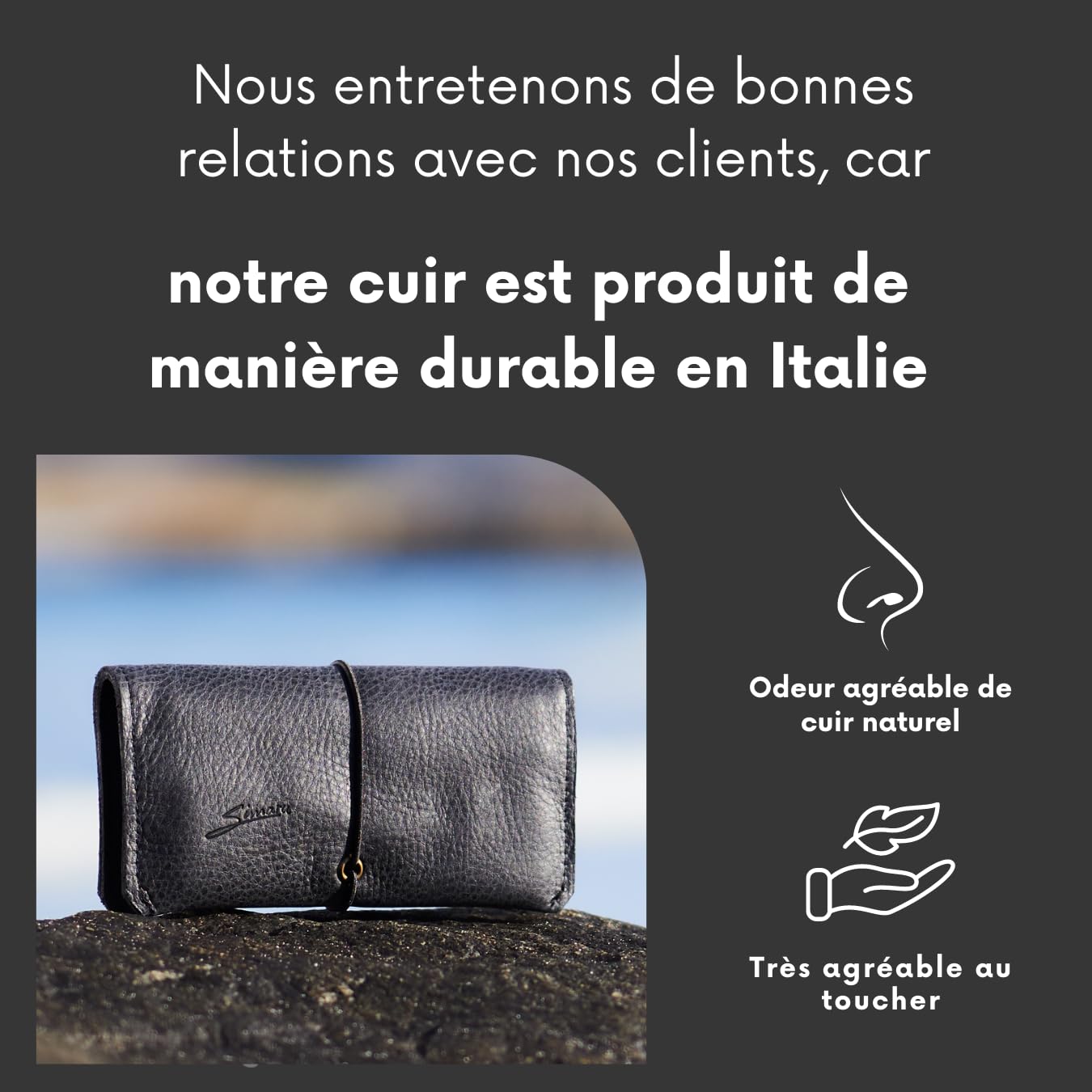 🚬Durables et exceptionnellement durables : les blagues à tabac sont réputées pour leur savoir-faire artisanal et l'utilisation de matériaux de haute qualité. 🚬Service : Pour toute question concernant ce produit, n'hésitez pas à nous contacter. Pensée pour le quotidien, notre blague à tabac en cuir accueille un paquet de tabac à rouler standard, vos feuilles, filtres et un briquet dans des compartiments dédiés 🚬Fermeture pratique pour un rangement flexible : que votre sac soit trop rempli ou presque vide, la fermeture pratique vous permet de l'ouvrir et de le fermer rapidement et facilement. Sa couleur marron sobre lui confère un look élégant et prévient efficacement le dessèchement de vos cigarettes. Blague à tabac en cuir de veau véritable avec pochette feuille - Un Plus besoin de fouiller dans vos poches ! 🚬Blague à tabac : Cette blague à tabac en cuir est élégante ! Simaru Blague à Tabac à rouler en Cuir Italien Véritable - Pochette 30g avec Compartiments pour Feuilles, Filtres et Briquets - Fermeture Éclair Supplémentaire pour un Rangement Sécurisé en destockage et reconditionné