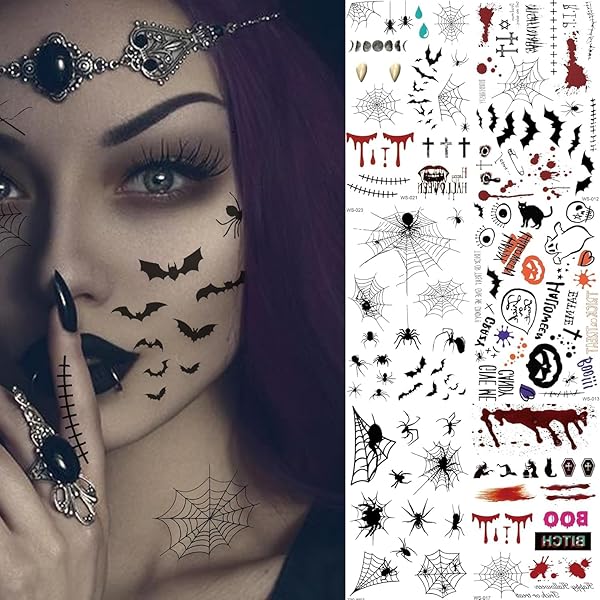 200 Pcs Halloween Imperméable Tatouages Temporaires, Zombie Cicatrices Horreur Realiste Tatouages Autocollants, Accessoires de Maquillage et de Cosplay pour fête d'Halloween (30 Feuilles) Marque Les tatouages scars d'halloween peuvent très bien durer de 3 à 5 jours. Autocollants Horreur Imperméables HJRUIUA 200+ Pcs Halloween Imperméable Tatouages Temporaires Zombie Cicatrices Horreur Realiste Tatouages Autocollants Accesso Accessoires Fête Déguisement Adulte Enfant La quantité sufffisante du tatouage vous permet de vous déguiser différemment. Economiser beaucoup de temps dans le maquillage d'Halloween. Les motifs de tatouage seront facilement enlevés avec de l'alcool à friction ou de l'huile pour bébé. Choix divers: Un ensemble de 30 feuilles d'autocollants d'Halloween, chaque feuille a plusieurs motifs qui peut satisfaire votre demande de déguisemant. La quantité sufffisante du tatouage vous permet de vous déguiser différemment 5 Sheets Cicatrices Stickers Tatouages temporaires De Tatouge Éphémères Imperméable et Durable: Les tatouages cicatrices pour le corps sont imperméables et résistants à la sueur. Facile à appliquer et à retirer: Il est facile à appliquer en suivant les instructions, assurez-vous que votre peau est vraiment propre. C'est un bon choix pour vous de mieux vous déguiser, et pour vous rend le centre de la soirée d'Halloween.