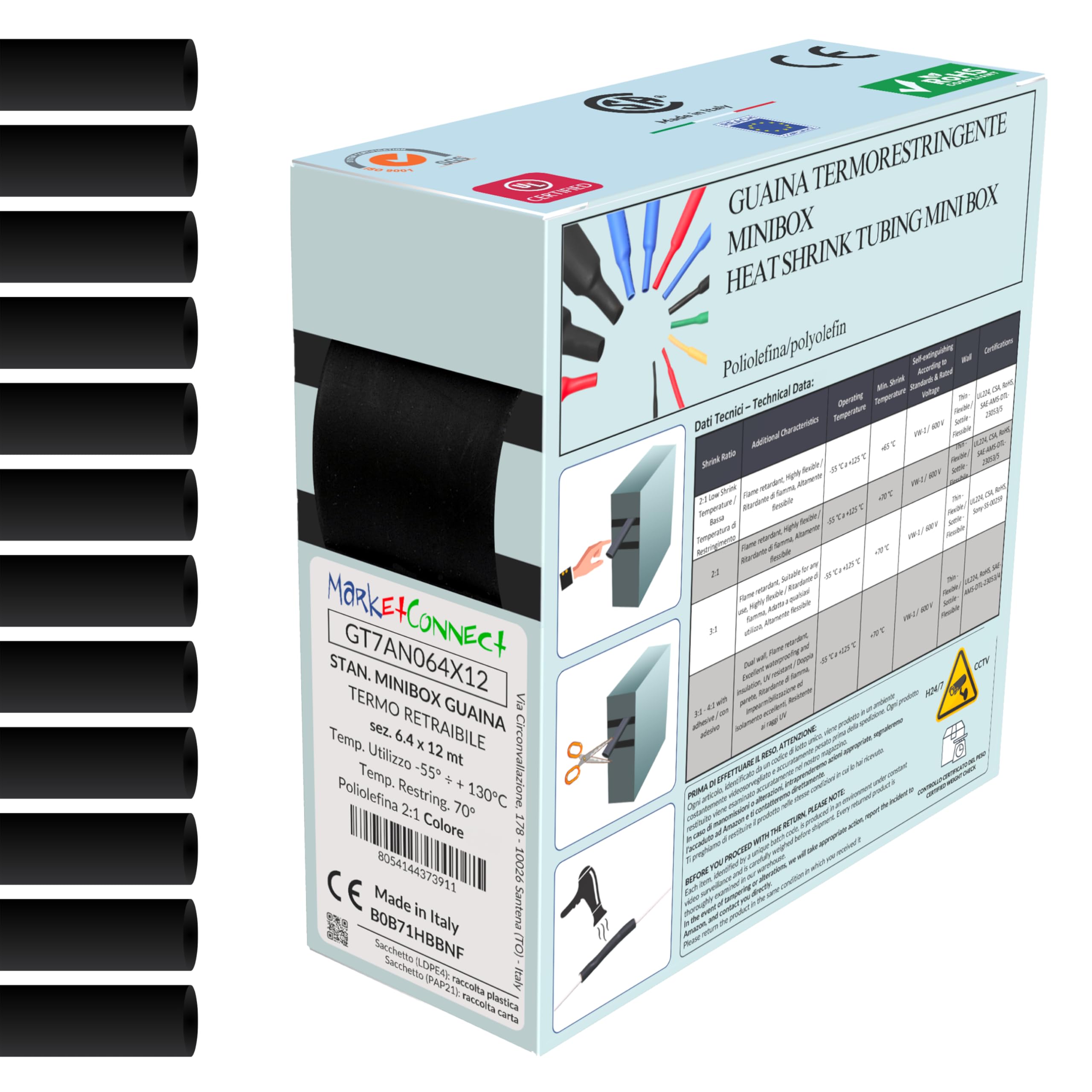 Cela compensera le raccourcissement qui se produit pendant le processus de chauffe. Gaine thermorétractable diamètre 12mm avec colle intégrée 1 mètre 📦✅ MINIBOX GRANDES SECTIONS 2:1 - GAMME DE GAINES THERMORÉTRACTABLES : Conçu pour répondre aux besoins des applications de grands diamètres. 🟩⬜🟥 FABRIQUÉ EN ITALIE ET SERVICE CLIENT : Nos gaines thermorétractables sont fabriquées en Italie avec soin et précision, dans nos laboratoires certifiés CE, conformes aux normes ISO 9001., MARKETCONNECT améliore quotidiennement la qualité des produits et services proposés. 4️⃣ Laissez refroidir pour assurer un scellement efficace et durable. 3️⃣ Appliquez uniformément de la chaleur à 70°C sur la gaine. Vous pouvez utiliser un sèche-cheveux domestique (le processus prendra plus de temps) ou un pistolet à air chaud industriel. Le rétracteur thermorétractable à paroi moyenne, doublé d'adhésif, fournit une étanchéité efficace dans divers environnements. Avec un diamètre de manchon de 32 mm et un diamètre rétréci de 7,5 mm, il ofe une excellente couverture pour une gamme de câbles et de connexions Rétrécit jusqu’à 2 fois le diamètre nominal. Boite assortiment gaine avec adhésif noir 85 pcs 8.5 m - Gaines thermorétractables Norme Ul 224 125°c 3M MDT-A32/7.5-B Gaine Thermorétractable Avec Colle Noir 32 Mm 7 5 Mm Taux De Retreint 4 1 1 M 92103411 Gaine Polyoléfine Irradiée 2️⃣ Insérez le câble à l'intérieur de la gaine. Vendue à PRIX D’USINE., COULEURS : ⚫ Noir. 💧✅ IMPERMÉABILITÉ ET PROTECTION : Fournit une excellente protection contre l'humidité, la poussière et la corrosion une fois chauffée et rétractée autour du câble. 📋🛡️ CERTIFICATIONS ET RÉSISTANCE : Conforme aux normes UL 224 125°C VW-1 600 V | Plage de températures de fonctionnement de -55 °C à +125 °C. ⚙️ UTILISATION : 1️⃣ Coupez la gaine à 5% plus longue que le câble à protéger.