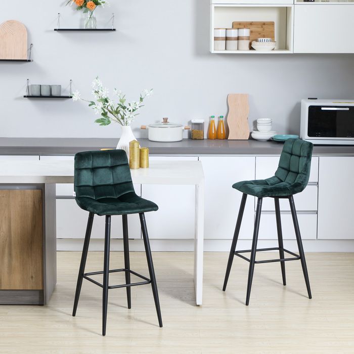 Contenu du colis: - 2 x Tabouret de Bar - 1 x Manuel Découvrez les tabourets de bar HOMCOM, parfaits pour animer vos soirées. Avec leur hauteur ajustable et leur assise pivotante à 360°, ils s'intègrent à tout bar ou comptoir Ajoutez fonctionnalité et style facilement ! L'assise tourne à 360 degrés pour une accessibilité facile Chaise de bar avec des pieds en acier revêtu par poudre pour une stabilité robuste , Montage facile Lot De 2 Tabourets De Bar Pivotants 55x46x92-112cm, Tabourets De Bar Pivotants 55x46x92 112cm Tabourets De Comptoir Reglables Avec Repose Pieds Pour La Cuisine Et La Salle A Manger Style Unique Emeraude Vert 80306522 Ensemble de 2 tabourets de cuisine pour des options d'assise coordonnées Mélange de velours et de lin allie douceur et durabilité Patins antidérapants garantissent la sécurité et la protection du sol Chaise haute de cuisine au design sans accoudoirs améliore la mobilité et la polyvalence Ensemble de 2 tabourets pivotants HomCom en similicuir gris pour îlot Hauteur réglable pour un confort personnalisé Cet ensemble de 2 tabourets de bar HOMCOM est idéal autour d'un îlot de cuisine, aux cotés d'une table haute dans le séjour ou bien près du comptoir de bar. Ces tabourets allient confort et design. Ils apporteront une touche vintage à votre intérieur. Très confortables avec leur assise et dossier rembourrés ainsi que leur repose-pied. Grâce à leur piètement réglable, les tabourets...
