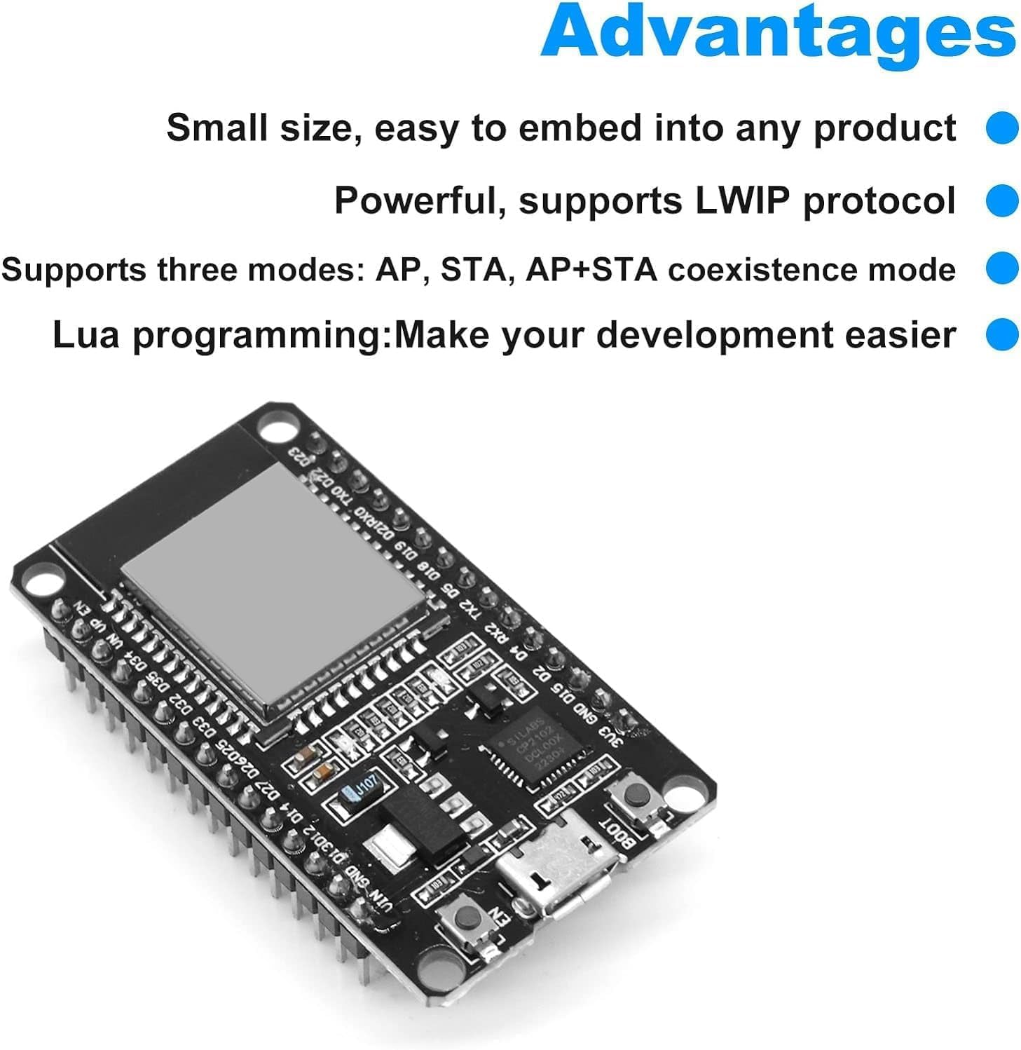 ⚡ Interfaces et connectivité riches : avec 45 GPIO, SPI, I²C, I²S, PWM, ADC, UART, USB OTG, CAN, interfaces LCD et caméra, la carte ESP32 S3 est parfaite pour les applications robotiques et AIoT. Description : La carte de développement RUIZHI ESP32 S3 (ESP32-S3-DevKitC-1) est un module hautes performances conçu pour les applications IoT et AIoT. 🚀 Puissante puce ESP32 S3 : équipé d'un SoC ESP32-S3, d'un microcontrôleur double cœur Xtensa LX7, d'une connexion Wi-Fi 2,4 GHz intégrée et du Bluetooth 5 (LE), le module esp32s3 est idéal pour l'IoT, les appareils intelligents et les projets Arduino. ESP32-S3 DevKitC-1 Double Cœur RUIZHI ESP ESP 3 2 S Schede Di Sviluppo, ESP Mini Modules 2.4 GHz Dual Core WLAN WiFi + Bluetooth 2 In 1 Microcontroller ESP WROOM 32 Chip CP2102 Per Arduno Compatible Arduino Potente chip ESP32 S3: equipado con SoC ESP32-S3, MCU Xtensa LX7 de doble núcleo, Wi-Fi de 2,4 GHz y Bluetooth 5 (LE) integrados, el módulo esp32s3 es ideal para proyectos de IoT, dispositivos inteligentes y Arduino ESP32-S3 Development Kits - Espressif Systems 🔌 Développement facile et compatibilité Arduino : deux ports USB Type-C pour la programmation (UART/USB), pris en charge par le framework ESP-IDF, migration facile depuis d'autres cartes ESP32.