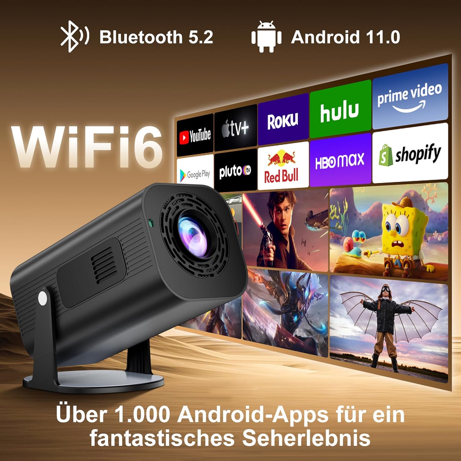 Séries, jeux ou musique, le projecteur offre une expérience d'écoute immersive. Profitez d'une expérience stéréo riche sans câblage compliqué. Projecteur portable rotatif à 210° : sa base innovante rotative à 210° brise les limites traditionnelles de l'angle de projection, permettant une projection facile sur le mur du salon ou le plafond de la chambre WiFi 6 et Bluetooth 5.0] le mini projecteur prend en charge la mise en miroir d'écran sans fil et est équipé du WiFi 6 (bande de fréquence 5G 2,4G) pour connecter facilement les appareils iOS, Android, PC et ordinateur portable Il prend en charge la correction automatique du trapèze et la mise au point manuelle, vous permettant d'obtenir une image nette et nette en 3 secondes. 360°Réglable] Eroshoo Mini Vidéoprojecteur Bluetooth WiFi Portable Système intelligent Android 11., 0 : le mini projecteur portable Eroshoo est équipé du système d'exploitation Android 11., 0., Avec 1 Go + 8 Go de stockage, vous pouvez facilement installer diverses applications vidéo. Profitez du grand écran à tout moment et en tout lieu. Mini Videoprojecteur 4k Mini Vidéoprojecteur Portable, Emotn H1 Projecteur 4K Batterie Intégrée Projecteur WiFi 6 Bluetooth Connectez un casque Bluetooth pour regarder des films tard le soir sans déranger votre famille, et associez facilement des haut-parleurs haute qualité lorsque vous êtes entre amis. 【Wi-Fi 6 double bande extrême】Le projecteur Eroshoo utilise la dernière technologie Wi-Fi 6 et prend en charge les doubles bandes 2,4G et 5G. Il se connecte très rapidement et facilement aux smartphones, ordinateurs portables et autres appareils.
