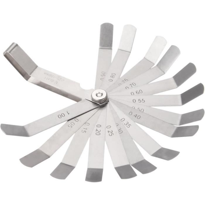 Le produit réel peut être légèrement différent mais n'affectera pas l'utilisation Jauge Epaisseur 1 Paquet De Jauge D'Épaisseur En Plastique 0,05-3 Mm Outils De Mesure D Jauge D'épaisseur 25 Lames 0.05-3 Mm Mesure Espace Sa compacte et sa construction le rendent facile à manipuler et à transporter, ce qui en fait un outil fiable pour n'importe tâche. L'erreur de mesure permis est de +/- 1-3 cm. Contenu de l'emballage : Cet ensemble comprend une jauge d'épaisseur en plastique de haute qualité comprenant 25 lames polyvalentes. Outil de mesure : la jauge d'épaisseur en plastique comprend 21 feuilles précises, parfaites pour mesurer avec précision l'espace de 0,05 mm à 3 mm. Chaque feuille est conçue de manière experte pour garantir des mesures fiables pour les tâches d'ingénierie,automobiles et industrielles Chaque lame est conçue avec précision pour mesurer des épaisseurs allant de 0,05 mm à 3 mm, idéale pour une variété d'applications d'ingénierie. Jauges d'épaisseur par ultrasons Série TI-25 Détails complets des mesures : La jauge comprend des feuilles dans les tailles suivantes : 0,05 mm, 0,075 mm, 0,1 mm, 0,125 mm, 0,15 mm, 0,2 mm, 0,25 mm, 0,3 mm, 0,35 mm, 0,4 mm, 0,45 mm, 0,5 mm, 0,55 mm, 0,6 mm, 0,7 mm, 0,8 mm, 0,9 mm, 1 mm, 1,1 mm, 1,2 mm, 1,3 mm, 1,4 mm, 1,5 mm, 2,0 mm, 3,0 mm, offrant des options complètes pour la plupart des travaux de précision. Il est parfait pour mesurer les largeurs d'espace et d'autres espaces où la précision est cruciale, améliorant ainsi la précision de votre travail.