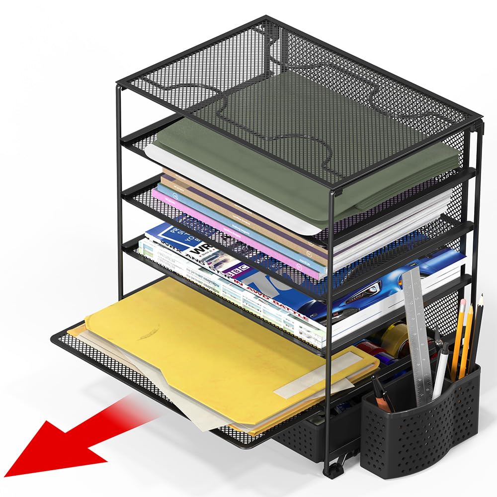 ✅【Assurance qualité】 Si vous avez des questions sur le produit, veuillez nous contacter et nous vous fournirons une assistance dans les 24 heures. Corbeille à Courrier Organiseur de Bureau 4 Etages en Maille Métallique Organiseur de Bureau à 5 Niveaux – Rangement de Documents avec Porte-Fichiers, Corbeille à Courrier en Maille Métallique – Blanc Utilisation efficace de l'espace de bureau : la structure spatiale verticale peut accueillir plus d'articles, économiser de l'espace sur le bureau et faciliter le travail de bureau. ✅【Améliorez votre efficacité de travail】L'organiseur de bureau Restorgan dispose de 5 plateaux coulissants et d'étagères latérales pour fichiers, ce qui peut vous aider à distinguer rapidement les fichiers et les articles dans chaque compartiment, ce qui rend l'accès aux articles plus efficace. Bac à Courrier à 5 Niveaux, Métalliques Bureau A4 Organisateur, Bac à... Cet organiseur de fichiers est parfait pour ranger vos fichiers, livres, lettres, papier A4 et autres accessoires de bureau. Restorgan Organiseur de bureau avec porte-fichiers, 5 niveaux, bac à courrier en papier, organisateur de bureau et de rangement, organiseurs de bureau en maille et accessoires pour fournitures de bureau à domicile (noir) Organisateur De Bureau Organiseur Avec Tiroir, Organiseur De Bureau, Bac à Courrier à 5 Rangement Bureau Métal Noir