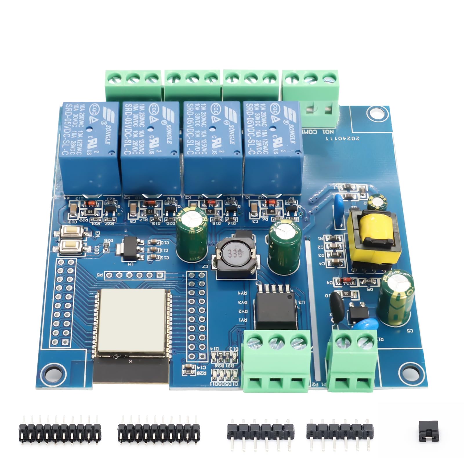Liste d'emballage :1 X ESP 4-Channel Relay Module2 X 10 PIN double rangée1 X 6 PIN à simple rangée4., 1 X capuchon de ligne simple Description :Module relais quadruple ESP WIFI Bluetooth BLE alimenté en AC/DC La carte de développement ESP-32-WROOM est une carte de développement avec une puce ESP intégrée et des relais quadruple. 【Carte de développement puissante】 : explorez le potentiel de l'IoT avec la carte de développement ESP-32-WROOM qui intègre le module ESP-32-WROOM-32E avec une mémoire flash de 4 millions d'octets. 【Polyvalent】: ESP 4-Channel Relay Carte de développement soutien au développement secondaire et à l'apprentissage, contrôle sans fil de la maison intelligente. 【Communication polyvalente】: équipée de WiFi, Bluetooth et BLE, cette ESP carte offre une connectivité sans fil transparente pour le contrôle des maisons intelligentes et les projets IoT. Esp32 Relay Binghe ESP 32 WROOM 32 ESP ESP 32S Carte De Développement Avec CH340 Module Bluetooth ESP32 4 canales relé odulo Binghe ESP32-WROO relé Placa de Desarrollo... CARTE RELAIS ESP32 WIFI Bluetooth BLE ESP32-WROOM carte de