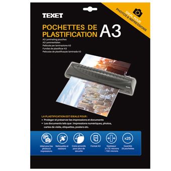 Pour un résultat optimal, la machine doit être réglée sur une épaisseur de 80 microns. Caractéristiques du produit: CARACTÉRISTIQUES: Il s'agit d'une couverture composée de 2 feuilles de plastique transparentes qui offrent une finition brillante, améliorant l'apparence du document et renforçant son contraste, offrant une plus grande durabilité. Comment choisir ses feuilles de plastification Les pochettes de plastification mates sont particulièrement utilisés pour plastifier des photos et éviter de dénaturer le travail de la photo avec des reflets Matériaux : coque en plastique de haute qualité avec une finition haut de gamme pour améliorer l'apparence, rehausser les couleurs et ajouter de la brillance. Feuille plastifieuse A3, Morpilot 80 microns, Pack de 110 pochettes de plastification - Autres MESURES : Le paquet de feuilles comprend 100 unités. CARACTÉRISTIQUES: Il s'agit d'une couverture composée de 2 feuilles de plastique transparentes qui offrent une finition brillante, améliorant l'apparence du document et renforçant son contraste, offrant une plus grande durabilité. Feuilles Plastique Transparent Brillant POCHETTES PLASTIFICATION GBC A3 80 MICRONS BOITE DE 100 UNITES Protection Documents Photos Élimine l'apparition de tout type de plis ou de rides. Couvertures résistantes de haute qualité pour plastifier des documents, des photographies, des horaires, etc. Scellez, protégez et préservez vos photographies, documents et papiers du passage du temps.