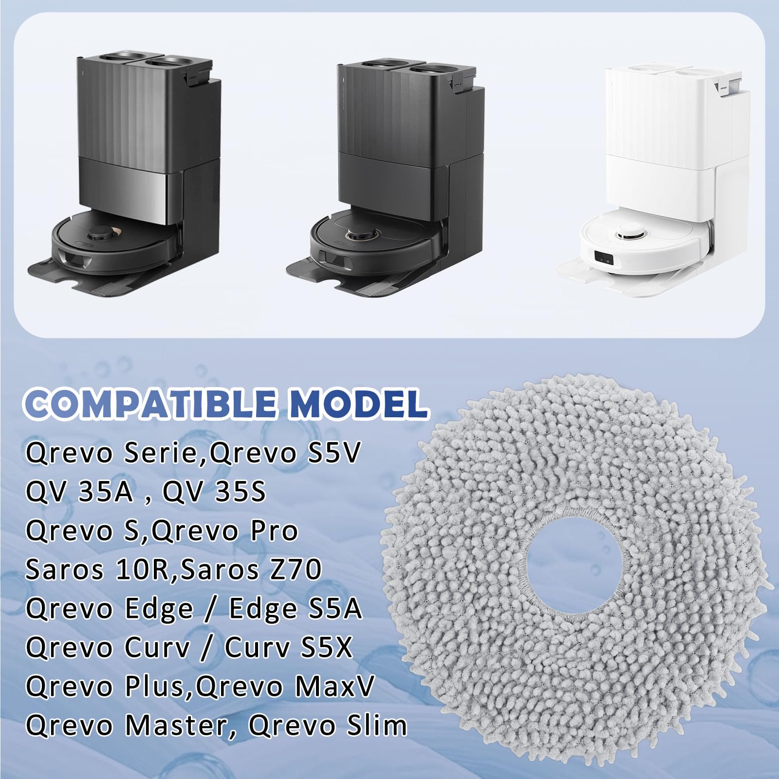 [Quantité dans un seul colis] Choisissez entre un lot de 4 ou 10 serpillères, vous donnant beaucoup de remplacements à portée de main pour une efficacité de nettoyage continue. Compatible avec plusieurs modèles : ce kit de serpillère est conçu pour s'adapter à différents modèles, y compris QV 35A, QV 35S et 10R, un match parfait pour vos besoins de nettoyage. Matériau durable : fabriqués à partir de microfibre robuste, ces serpillères sont conçues pour résister à une utilisation fréquente sans se déchirer ou s'user, offrant une performance fiable. Microfibre Durable Anti-déchirure 8 Serpillières De Rechange Pour Roborock Saros 10R/Z70/Qrevo/Qrevo Kit Nettoyage Robot Aspirateur Nettoyage efficace du sol : chiffon lavable spécialement conçu pour EUREKA E20 et pour aspirateur robot Evo Plus, se fixe en toute sécurité pour un nettoyage complet pour laisser les sols impeccables et frais en moins de temps Roborock Beutel Saros 10 | Preisvergleich bei idealo.de Luernas Lot De 10 Serpillères Pour Aspirateur Robot Dreame Bot Z10 Pro