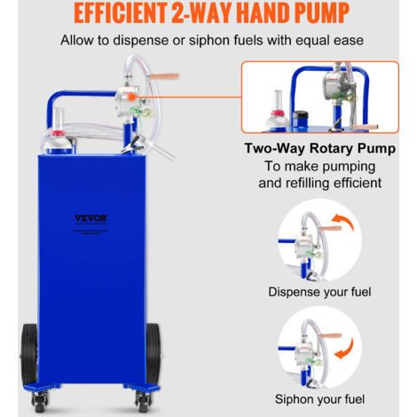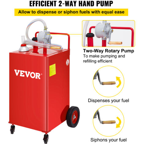 Le col de large diamètre offre une ouverture plus grande pour faire le plein sans renverser ni gaspiller de carburant. VEVOR Caddy à carburant, 35 gallons, réservoir de stockage de gaz sur 4 roues, avec pompe de transfert manuelle, réservoir de carburant essence-diesel pour voitures, tondeuses, véhicules tout-terrain, bateaux, plus, Noir C'est un équipement idéal pour les réparations automobiles, les fermes, les jardins, les petits moteurs, les motos/VTT, les utilisations marines, et plus encore. Et un support de tuyau est fourni pour faciliter le rangement de votre tuyau. Ce matériau de haute qualité garantit une longue durée de vie. Réservoir en acier très robuste : fabriqué en acier au carbone, ce réservoir d'essence avec pompe est capable de gérer des conditions météorologiques changeantes et résiste aux rayons UV et aux bosses. Transport sans effort et facile à utiliser : la pince de terre antistatique peut empêcher les décharges statiques et éliminer l'électricité statique. Bidon Essence 10 L Jerrican de Carburant avec Bec Verseur Un goulot de remplissage avec bouchon d'essence, un support de tube pratique et une poignée de poussée à levier sont également équipés Vous pouvez remplir les réservoirs de stockage de gaz plus rapidement sans transpirer tout en transférant du carburant en toute sécurité. Les roues robustes de 25,4 cm et les roues de 6,35 cm transportent facilement votre chariot sur les terrains les plus difficiles. Ce chariot de carburant VEVOR de 35 gallons est conçu pour un transport et un ravitaillement efficaces de l'essence, du diesel ou du kérosène. Sa construction robuste et ses roues mobiles facilitent son utilisation dans divers environnements, que ce soit pour des réparations automobiles, des fermes, des jardins, ou des applications marines Jerrican Essence 5l VEVOR Chariot De Carburant 30 Gallons Reservoir De Stockage Deessence 4 Roues Pompe De Transfert Manuelle Conteneur De Carburant Essence Diesel Pour Voitures Tondeuses A Gazon Vtt Bateaux Jaun Une jauge de remplissage précise vous permet de déterminer votre niveau de carburant.